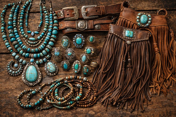 - layered jewelry and turquoise accessories