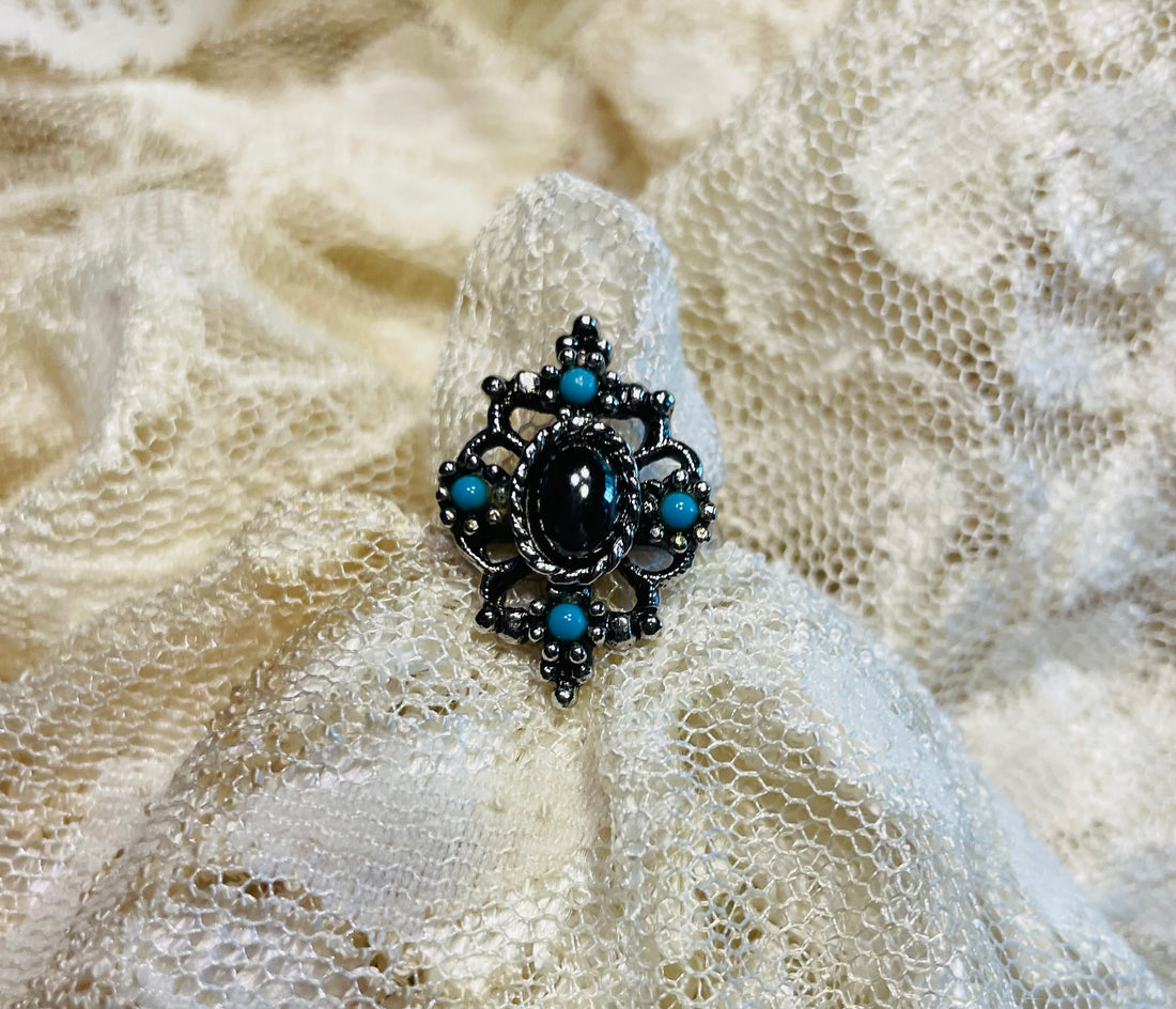 80s Silver Plated Decorative Blue Stone Hematite Ring
