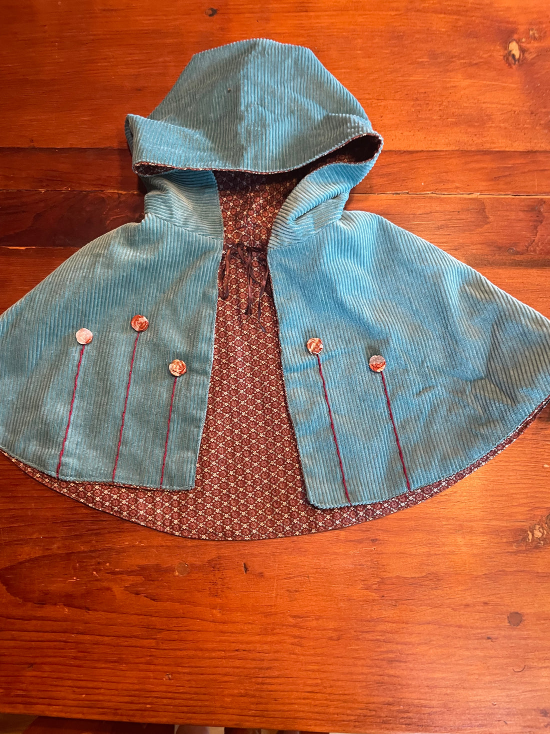Vintage Beads & Fabric Tie Hoodie Toddler Cape 12-24 Months
