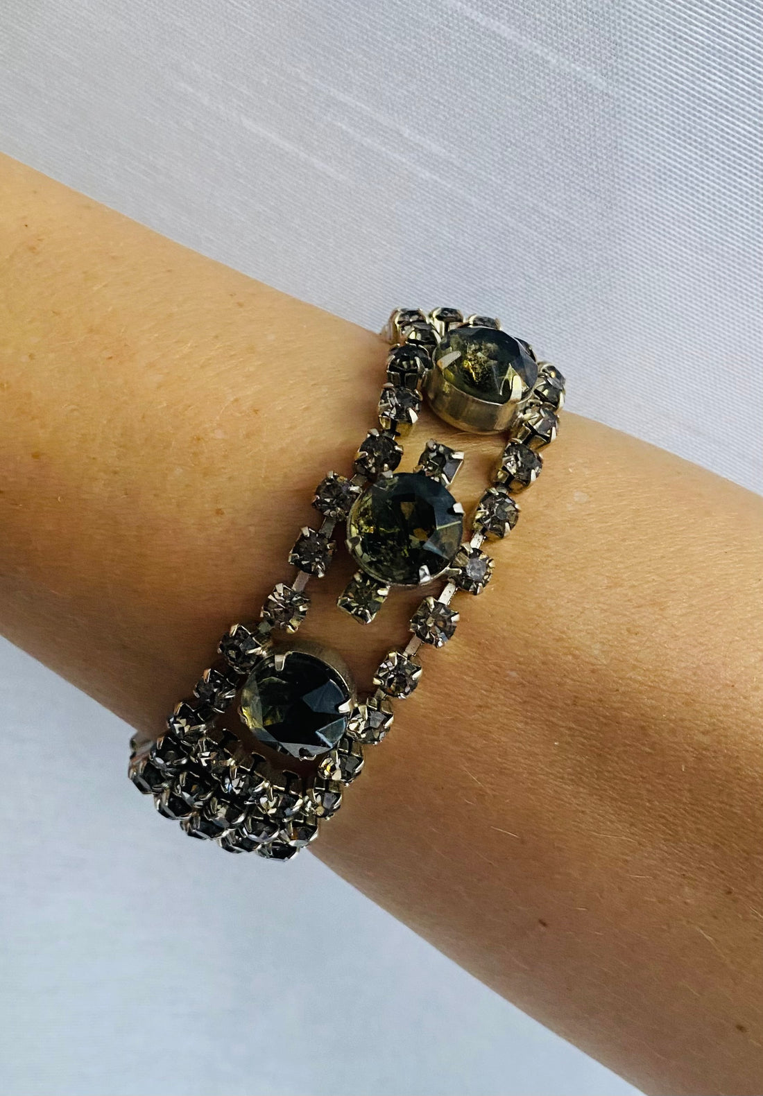 80s Vintage Gorgeous Midnight Hour Rhinestone Bracelet