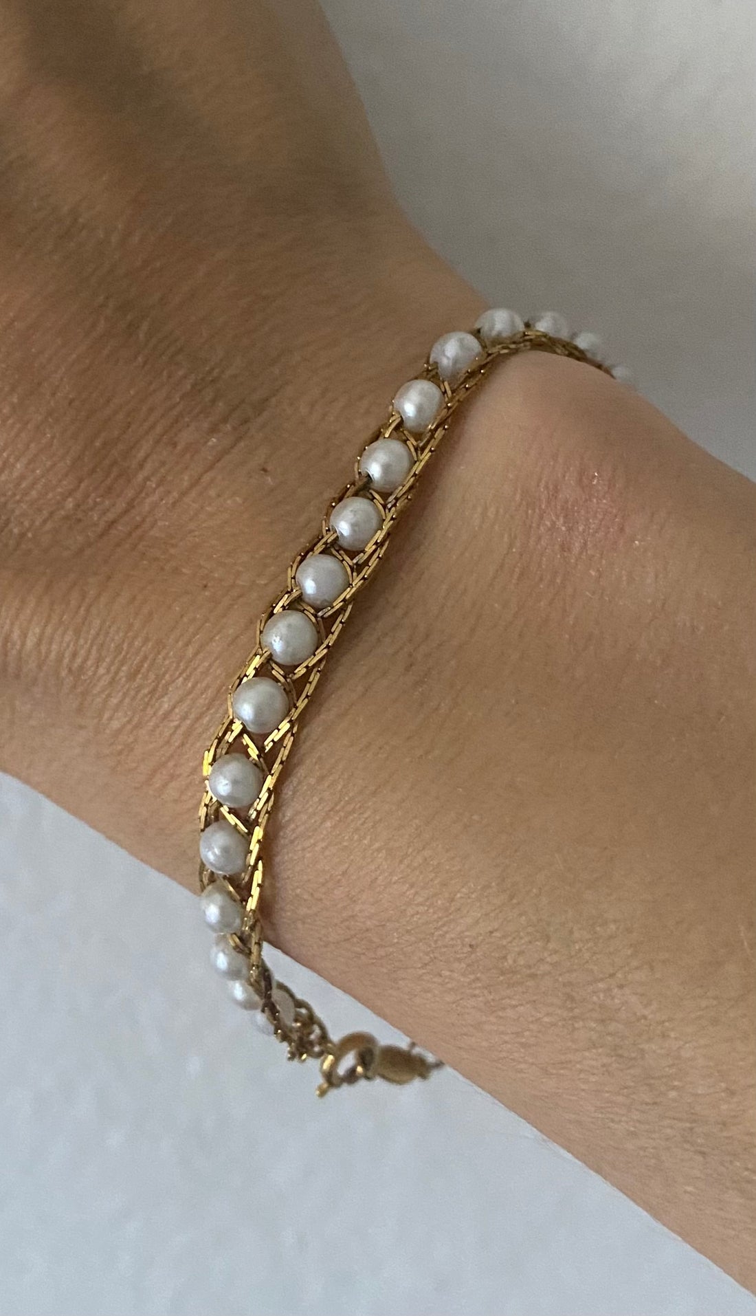 90s Gold Tone Faux Pearl Delicate Bracelet