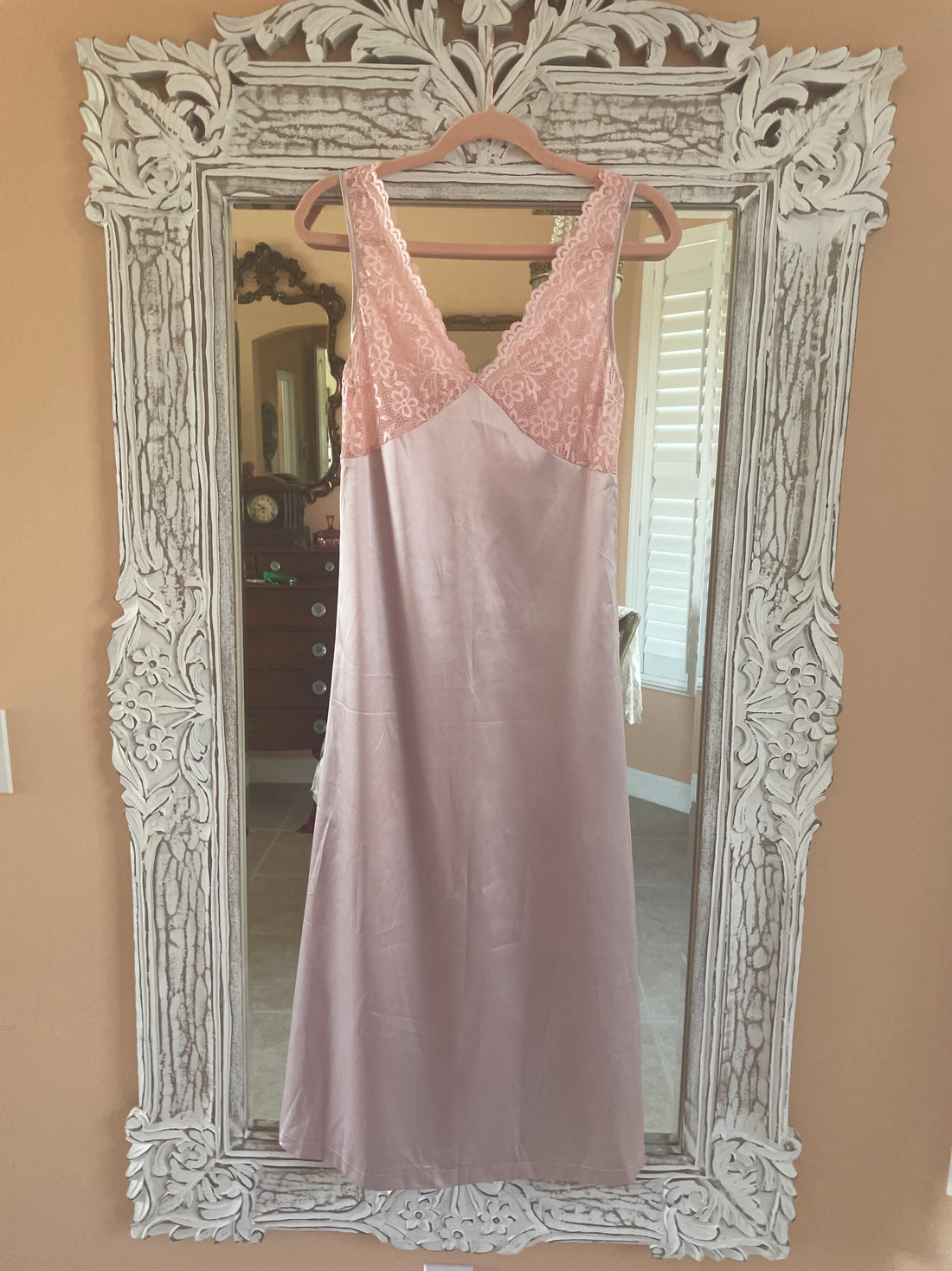 2000s Pale Pink Lace Silky Lingerie Cami Lg