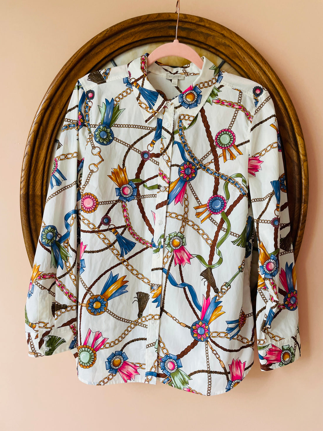 100% Cotton Button Down Printed Womens Shirt Lg