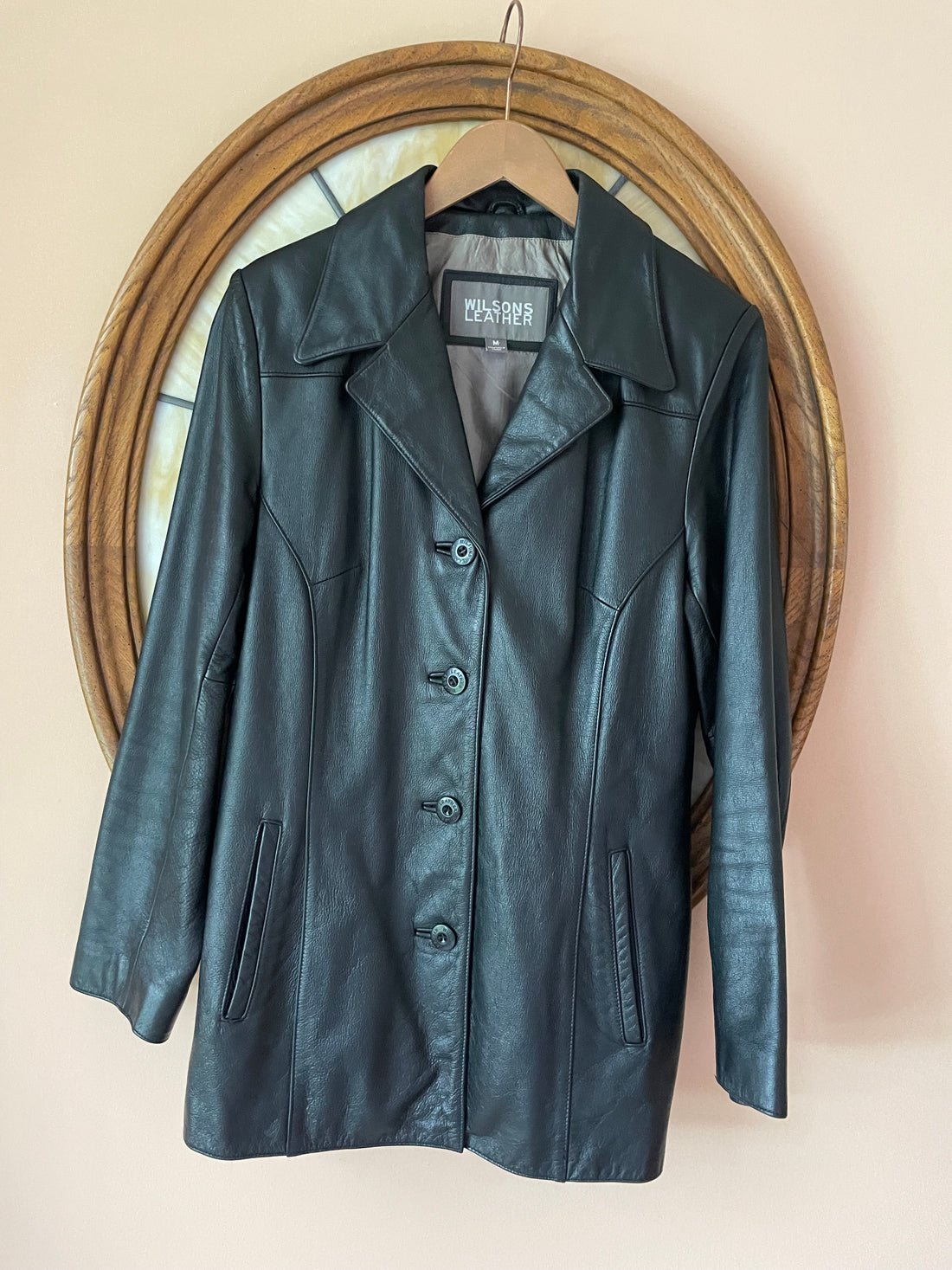 90s Vintage Women’s Classic Black Leather Jacket. M