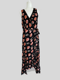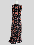 90s Vintage Floral Print Vintage Black Ruffled Wrap Sleeveless Dress M