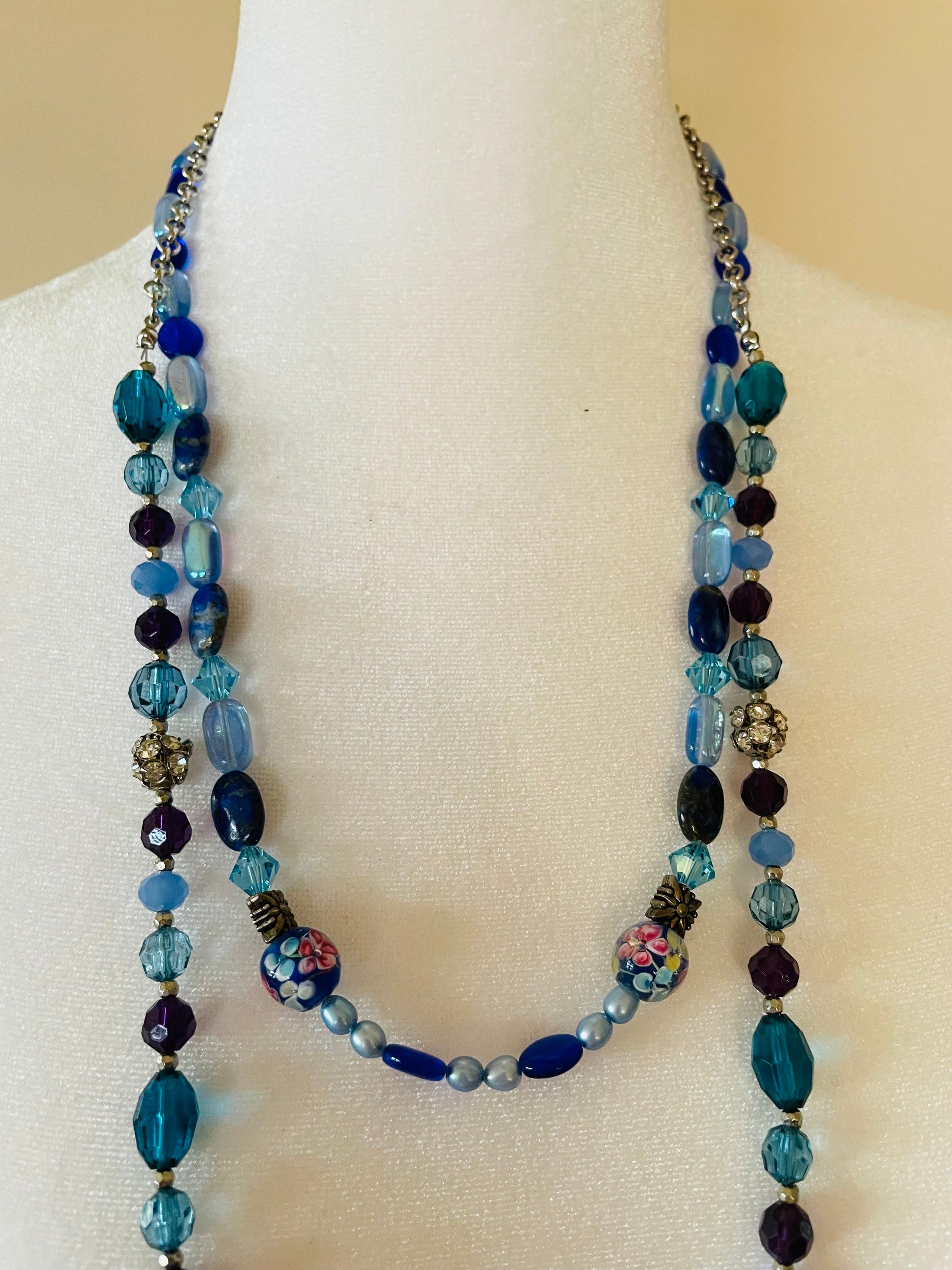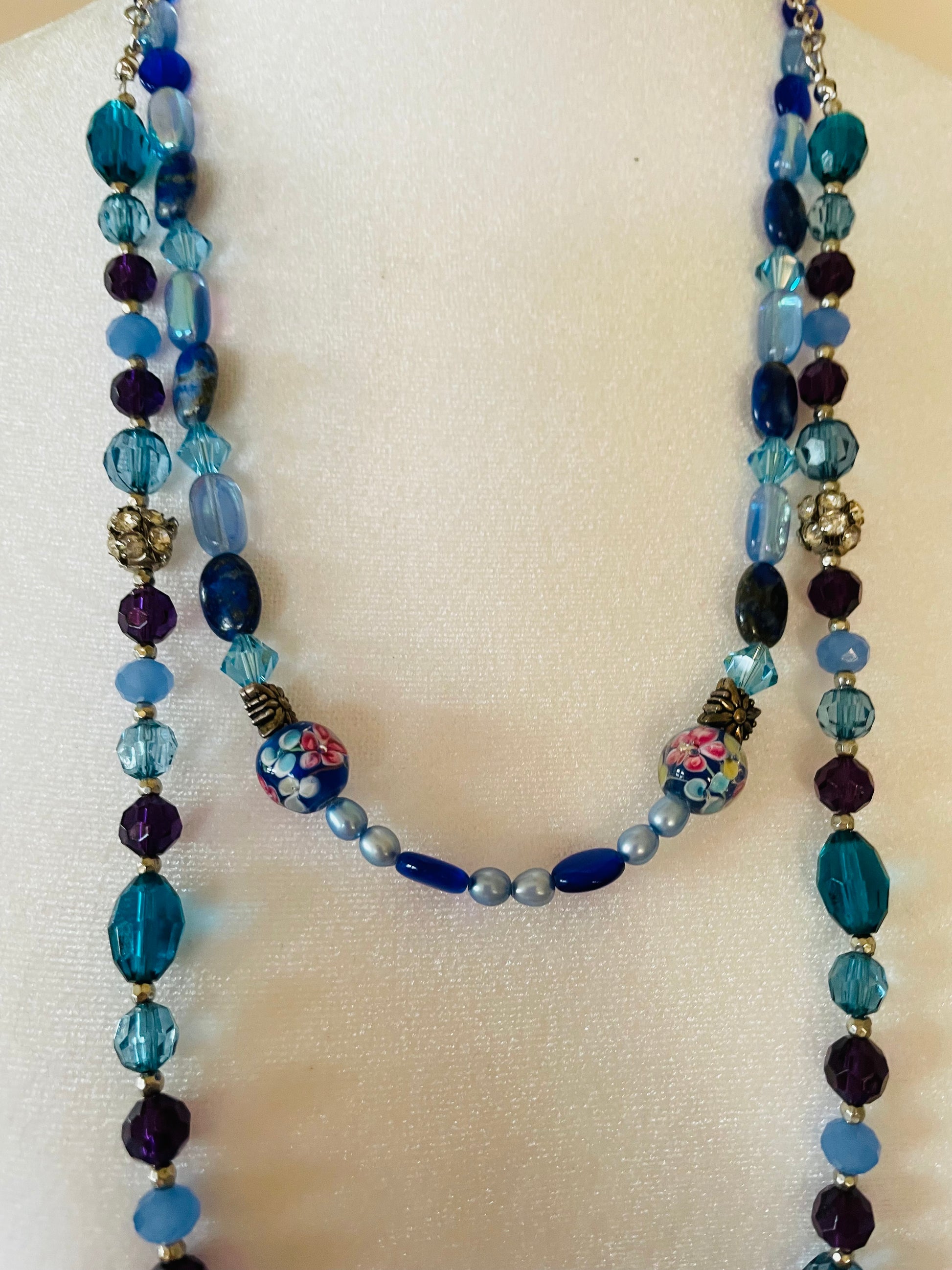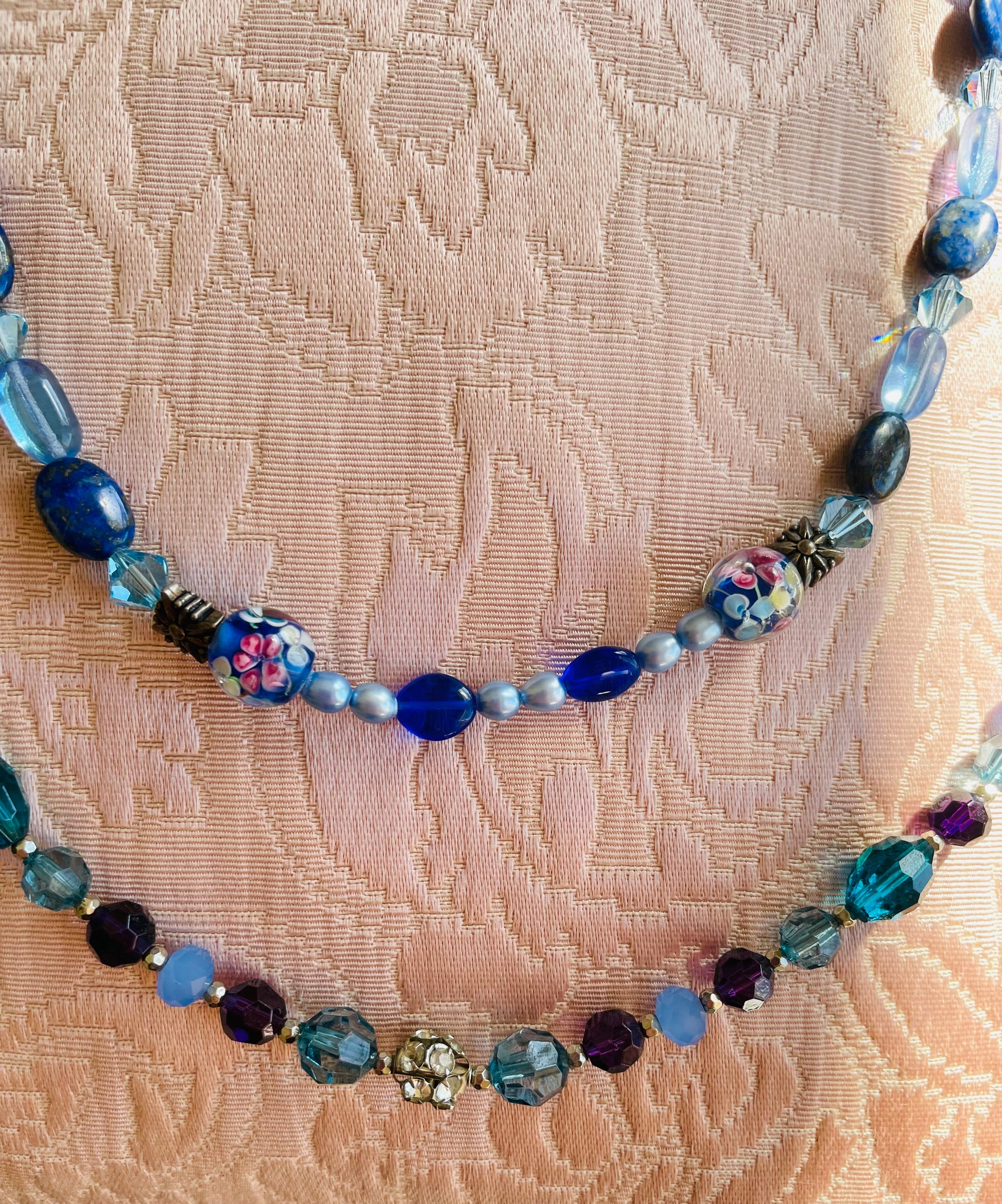 2 Handmade Shades of Blue Glass Acrylic Beads Necklaces