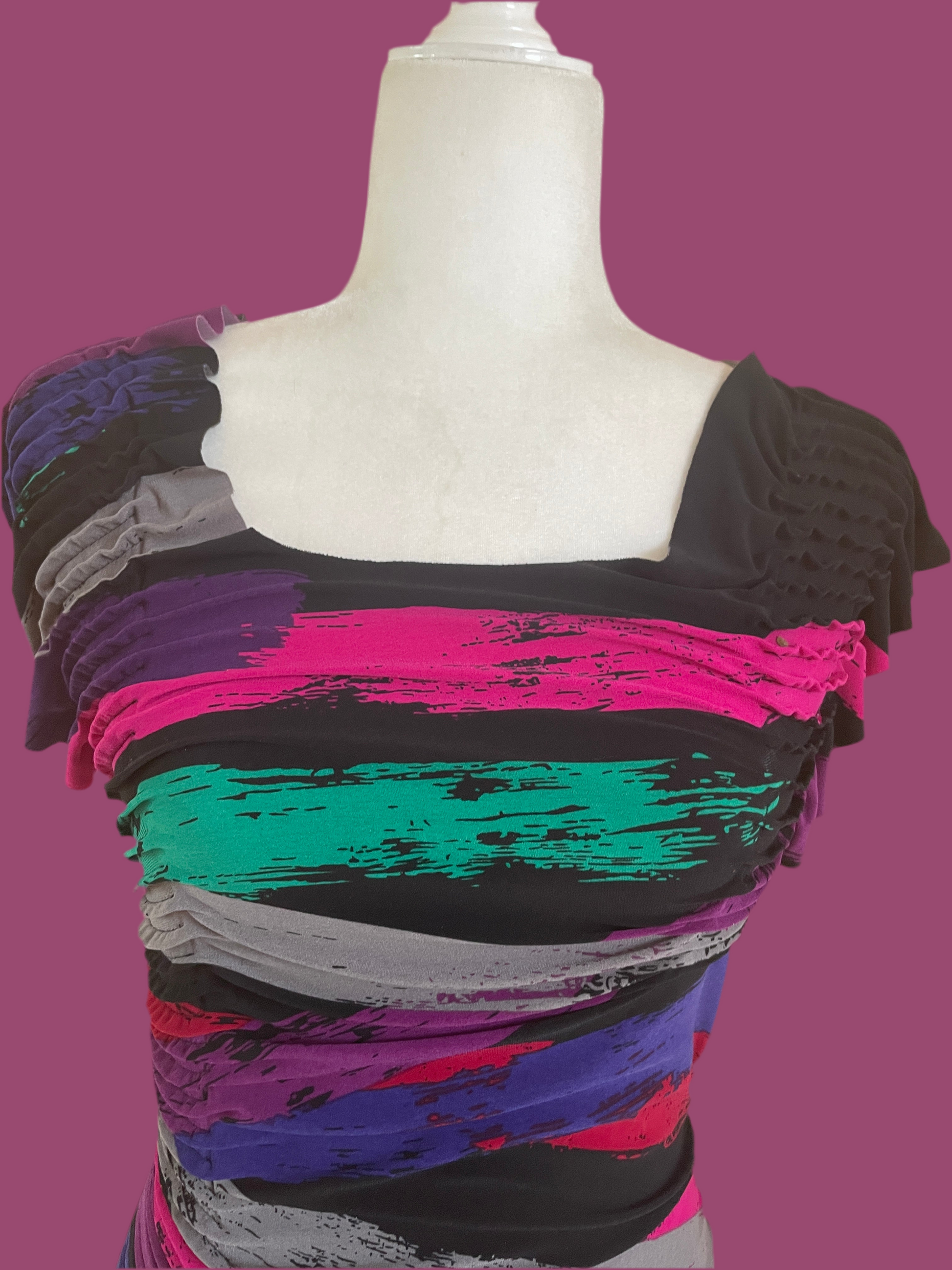 2000’s Bodycon Poly Black Multicolor Cool Print Dress S