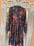 2000s April Cornell 100% Rayon Floral Print Back Tie Midi Dress M
