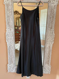 2000s Black Silky Poly Lingerie Lounge Maxi Slip Dress M