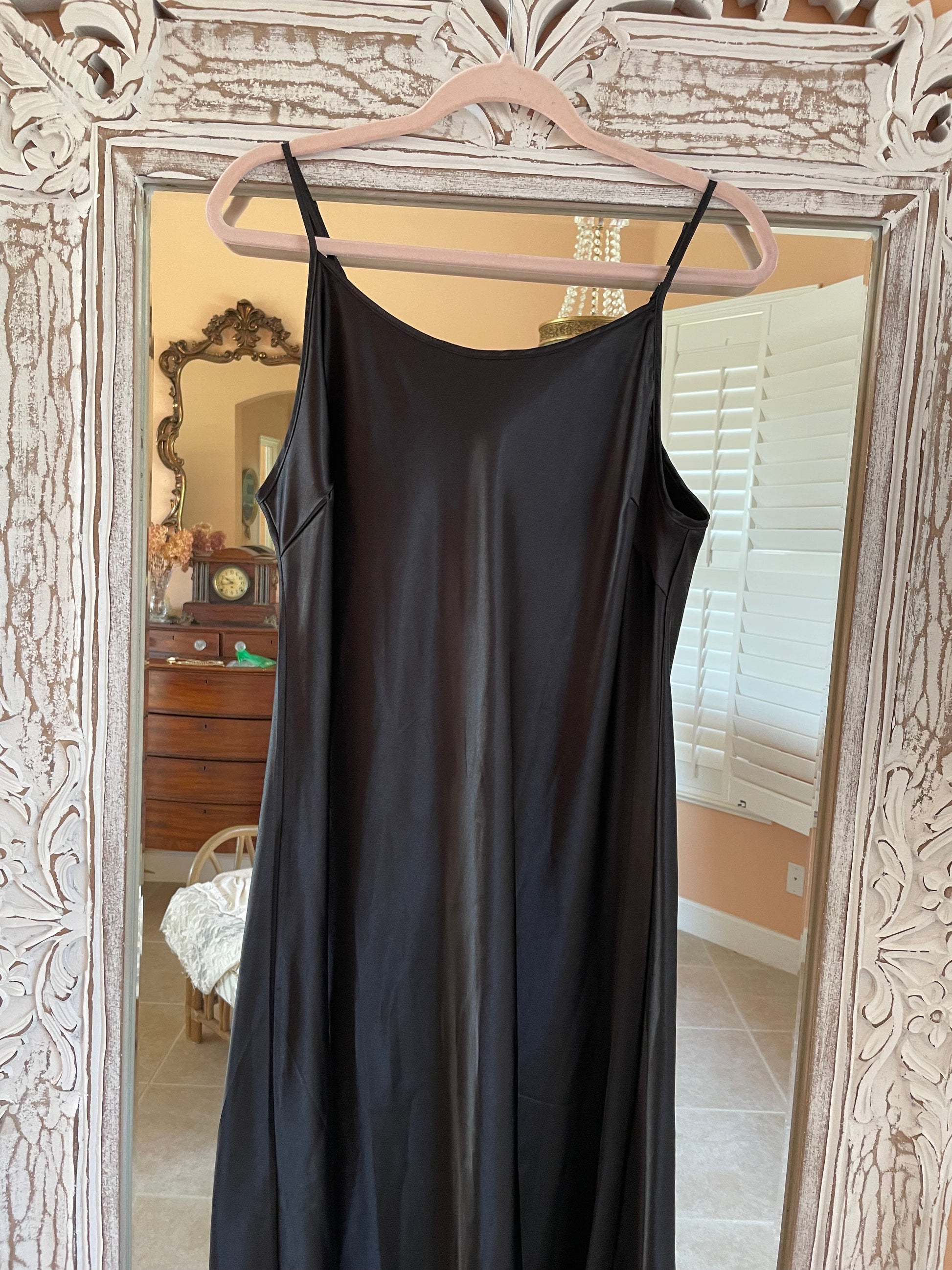 Lovely sleek black lingerie lounge about or wear as a dress. Maxi length. Adjustable Straps. Elegant style.