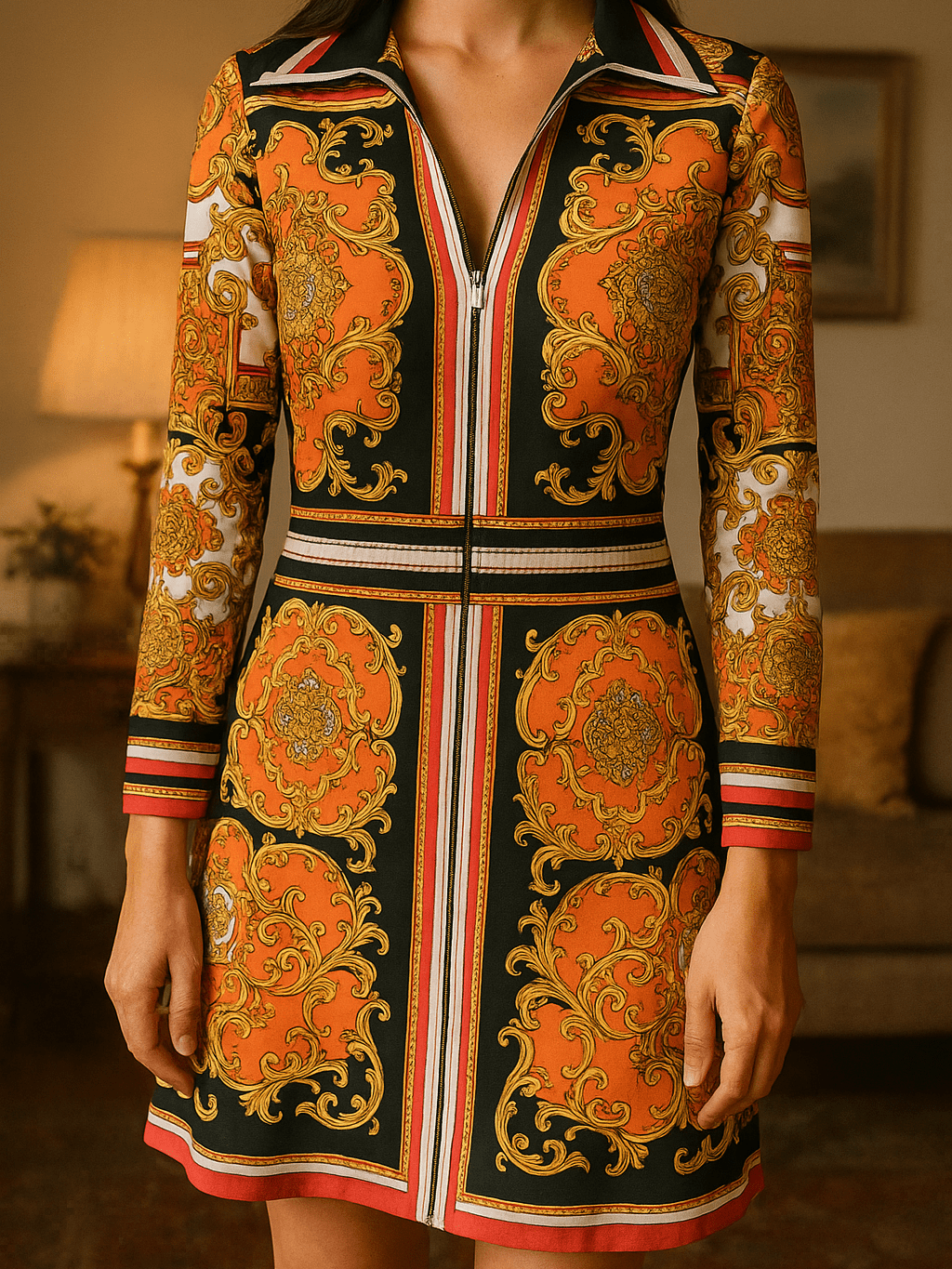 This 2000s pullover dress bursts with bold print and effortless shape. The collared V-neckline adds structure to movement, while the lightweight fabric brings pure fun to dressing up.