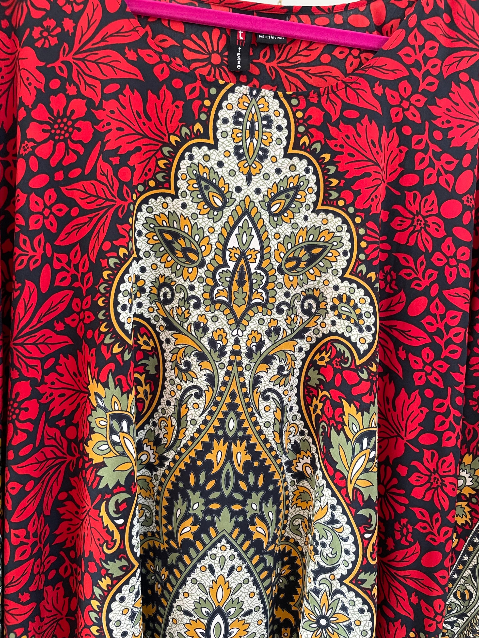 2000s Decorative Poly Print India Maxi Kaftan Plus size