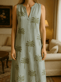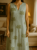 This Muriel Brandolini maxi dress channels the breezy sophistication of island living. Its palm print design feels fresh, feminine, and effortlessly chic.