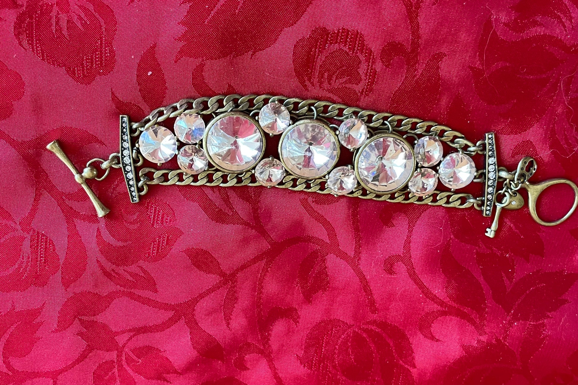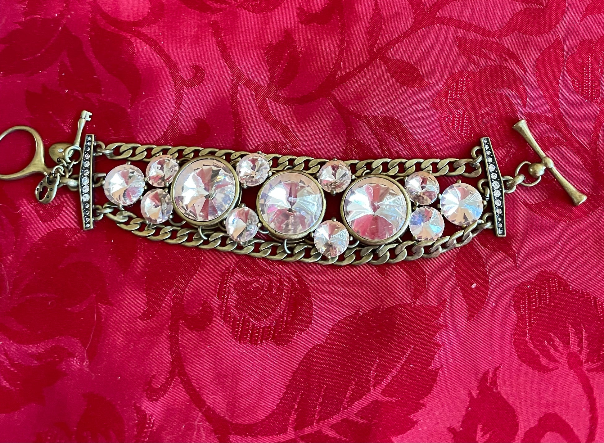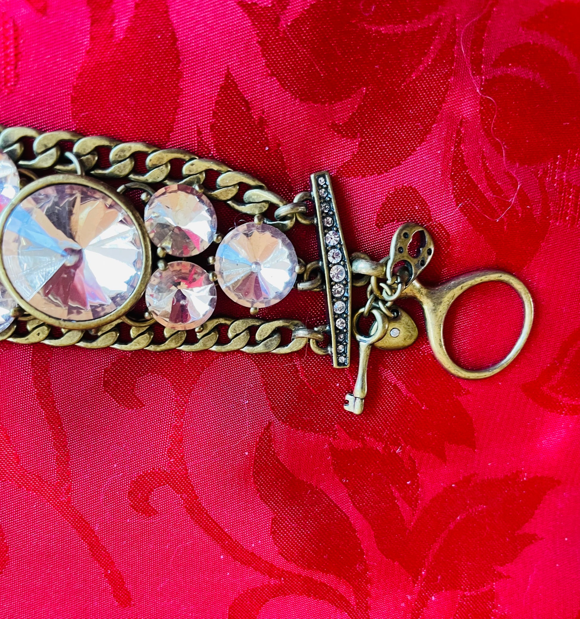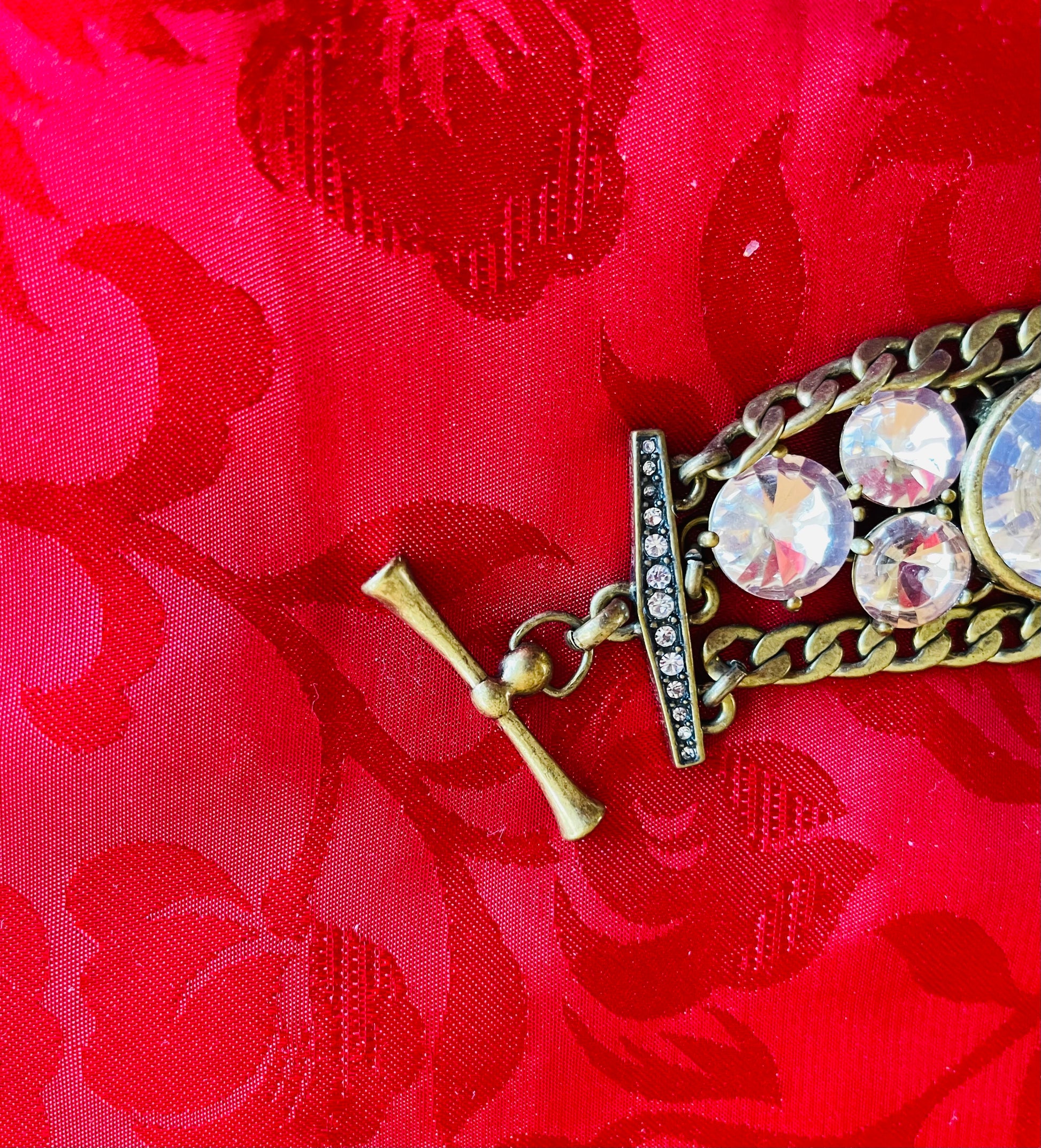 2000s Gold Tone Chain Reflective Rhinestones Bracelet