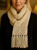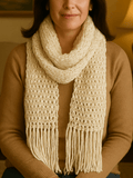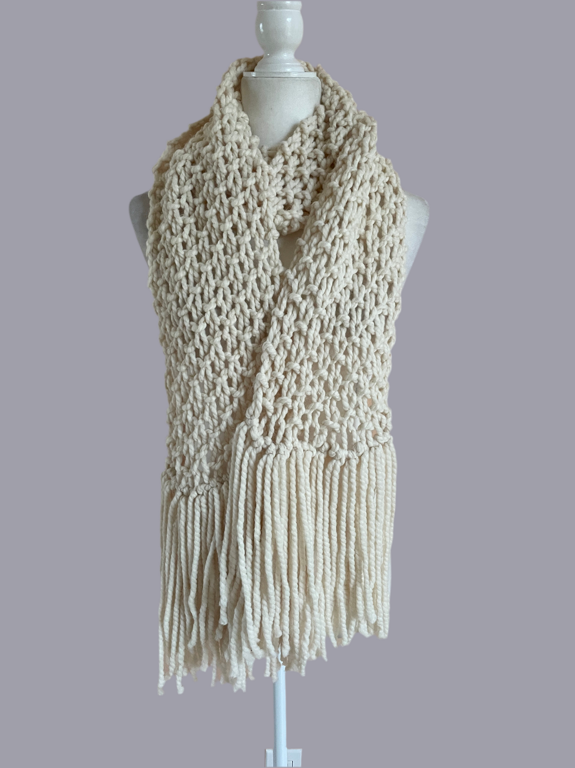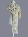 2000s It’s Chilly Hand Knit White Fringed Winter Wrap Scarf