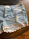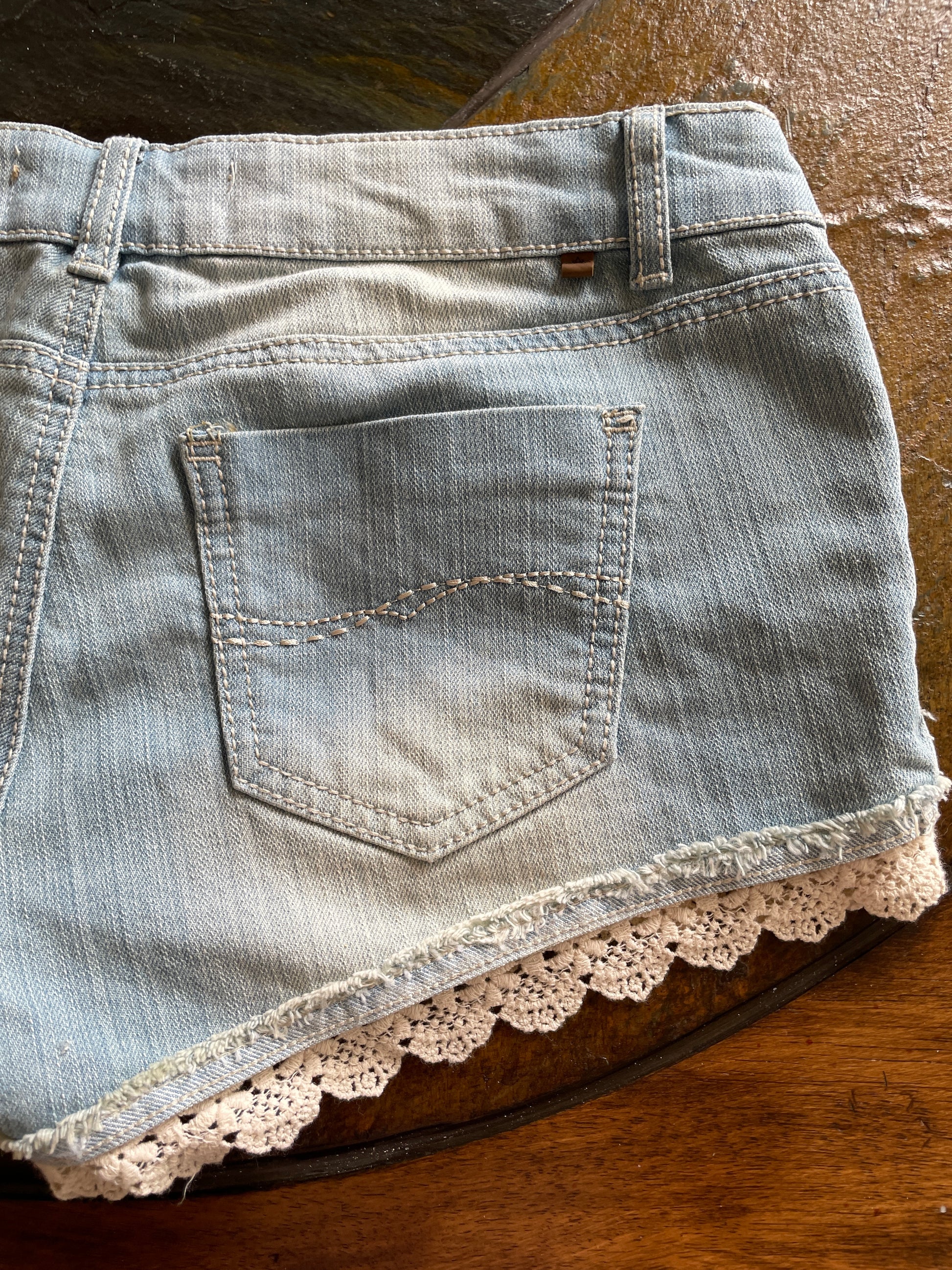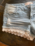 2000s Almost Famous Fringed Tattered Lace Pockets Cotton Blend Denim Shorts S