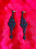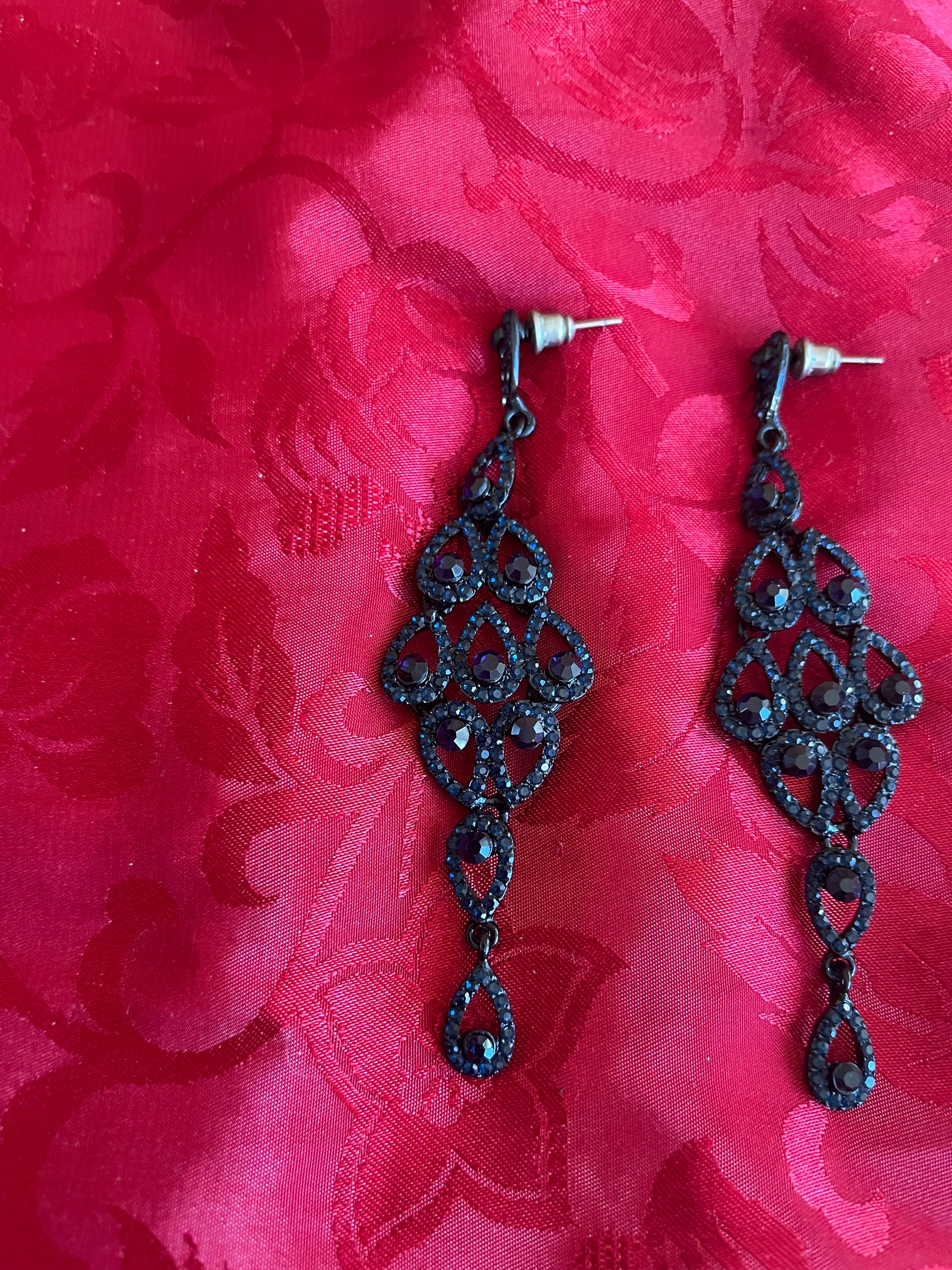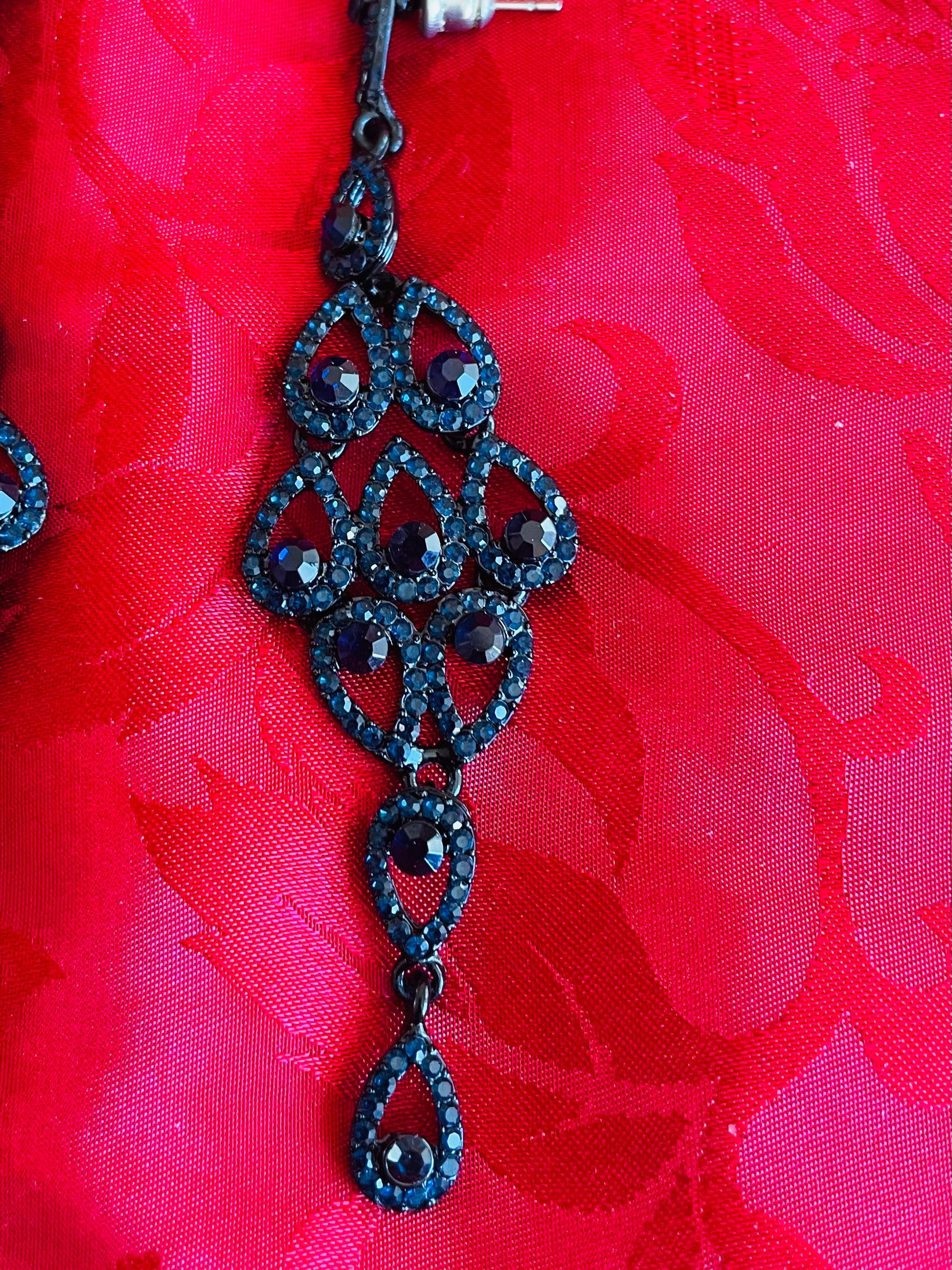 2000s Midnight Blue Austrian Crystal Rhinestone Chandelier Pierced Earrings