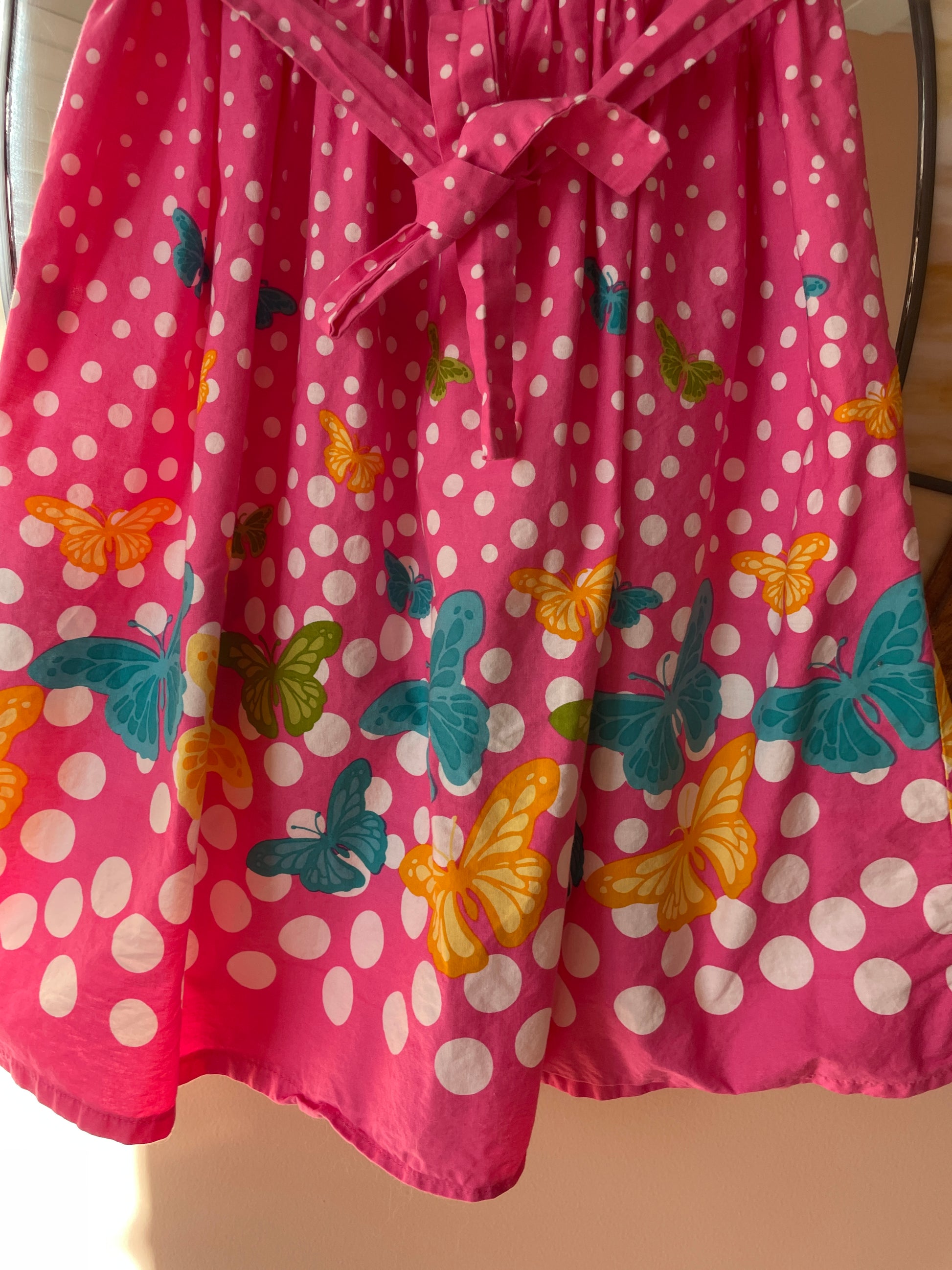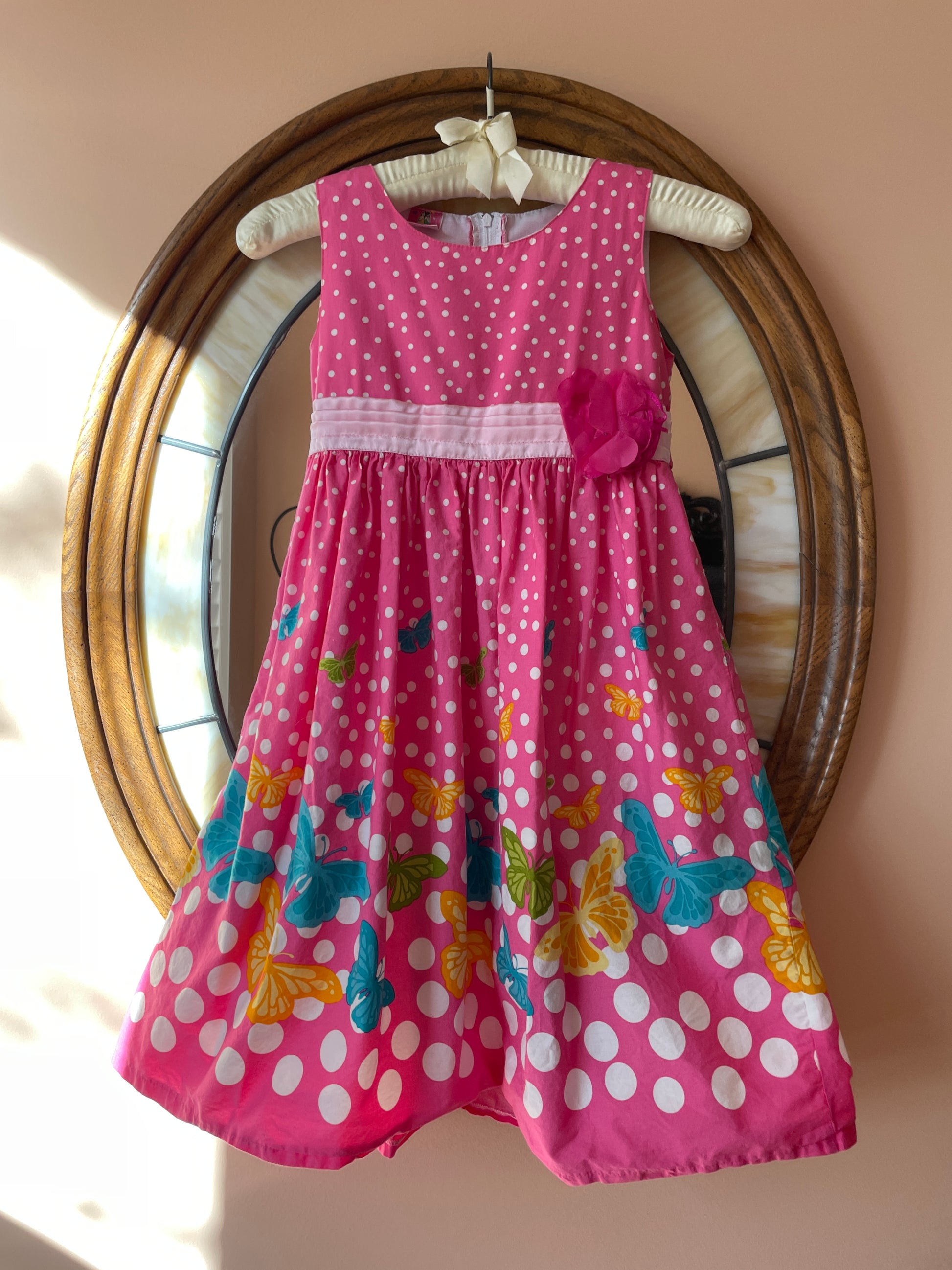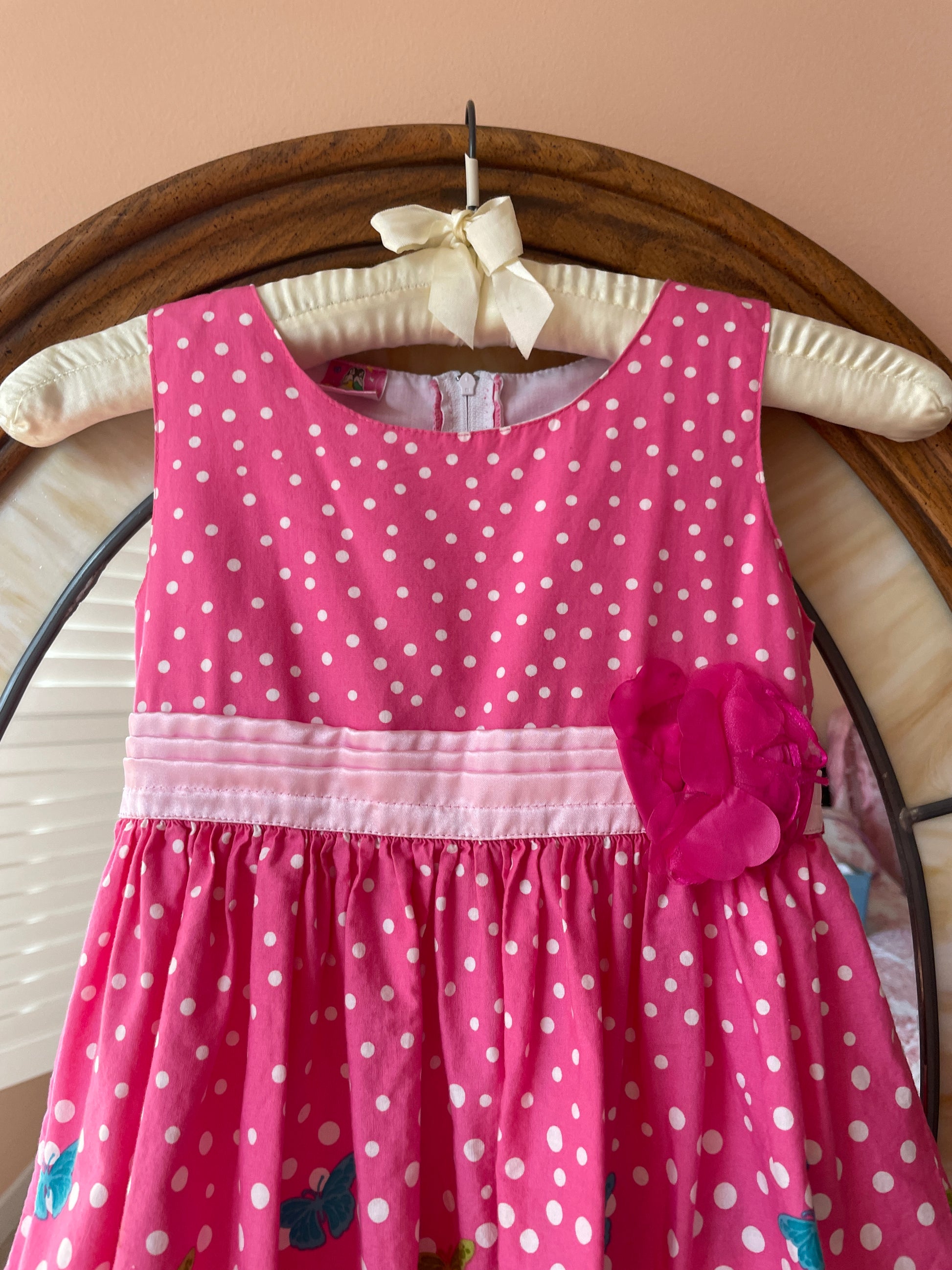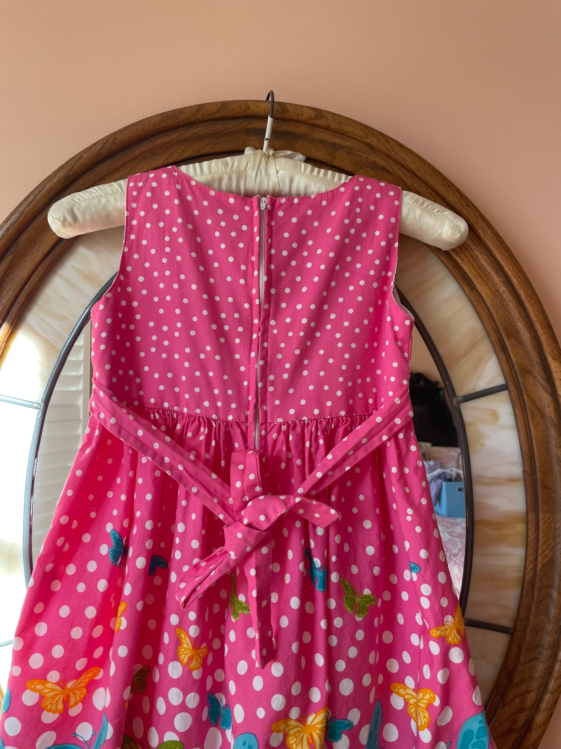 2000s. Pink Cotton Butterfly & Polka Dot Flower Sleeveless Girls Dress 6X
