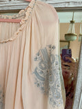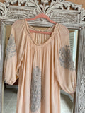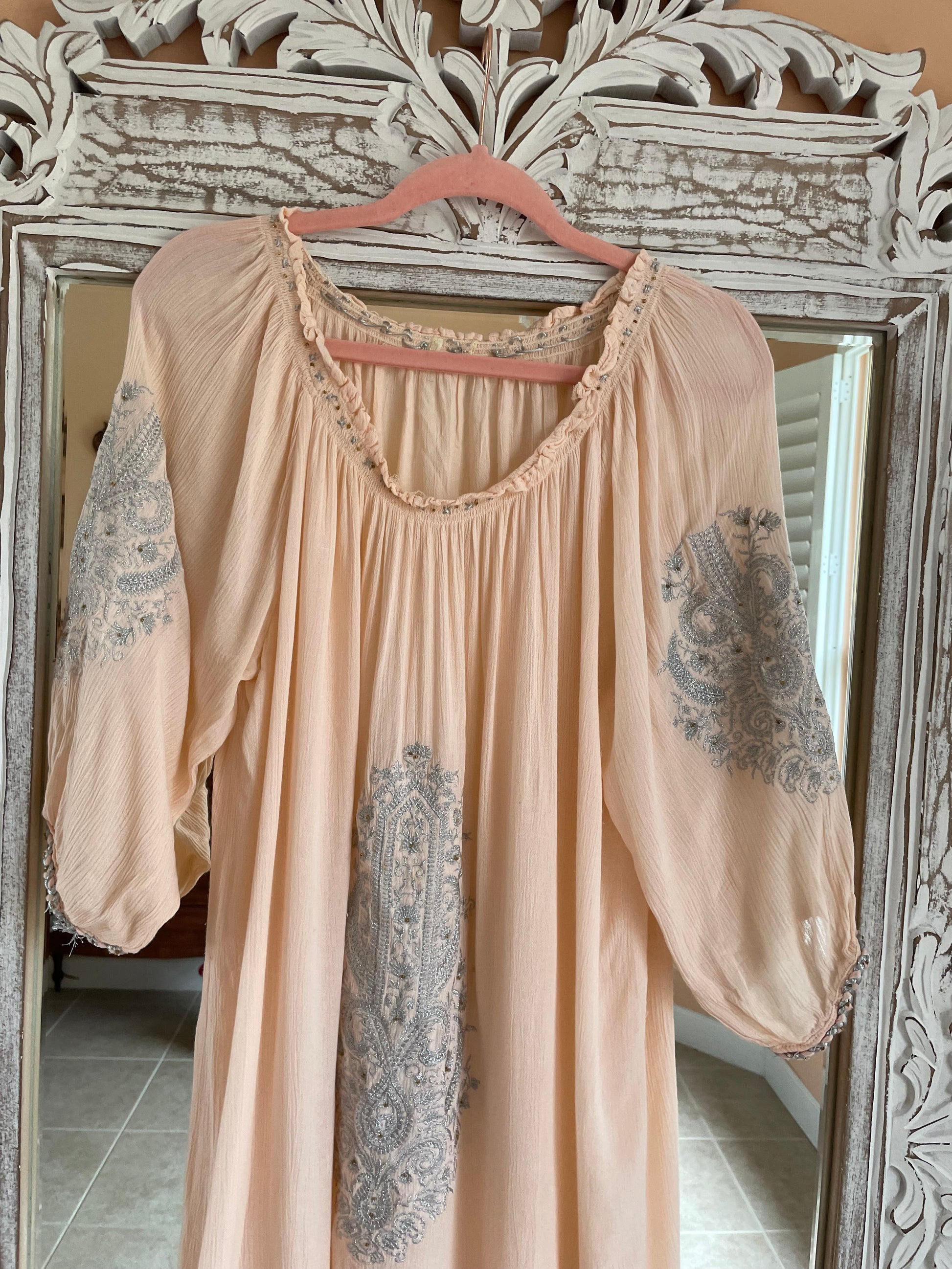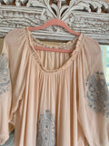 2000s Pink Rayon Silver Embroidery Lounge Casual Boho Dress Lg