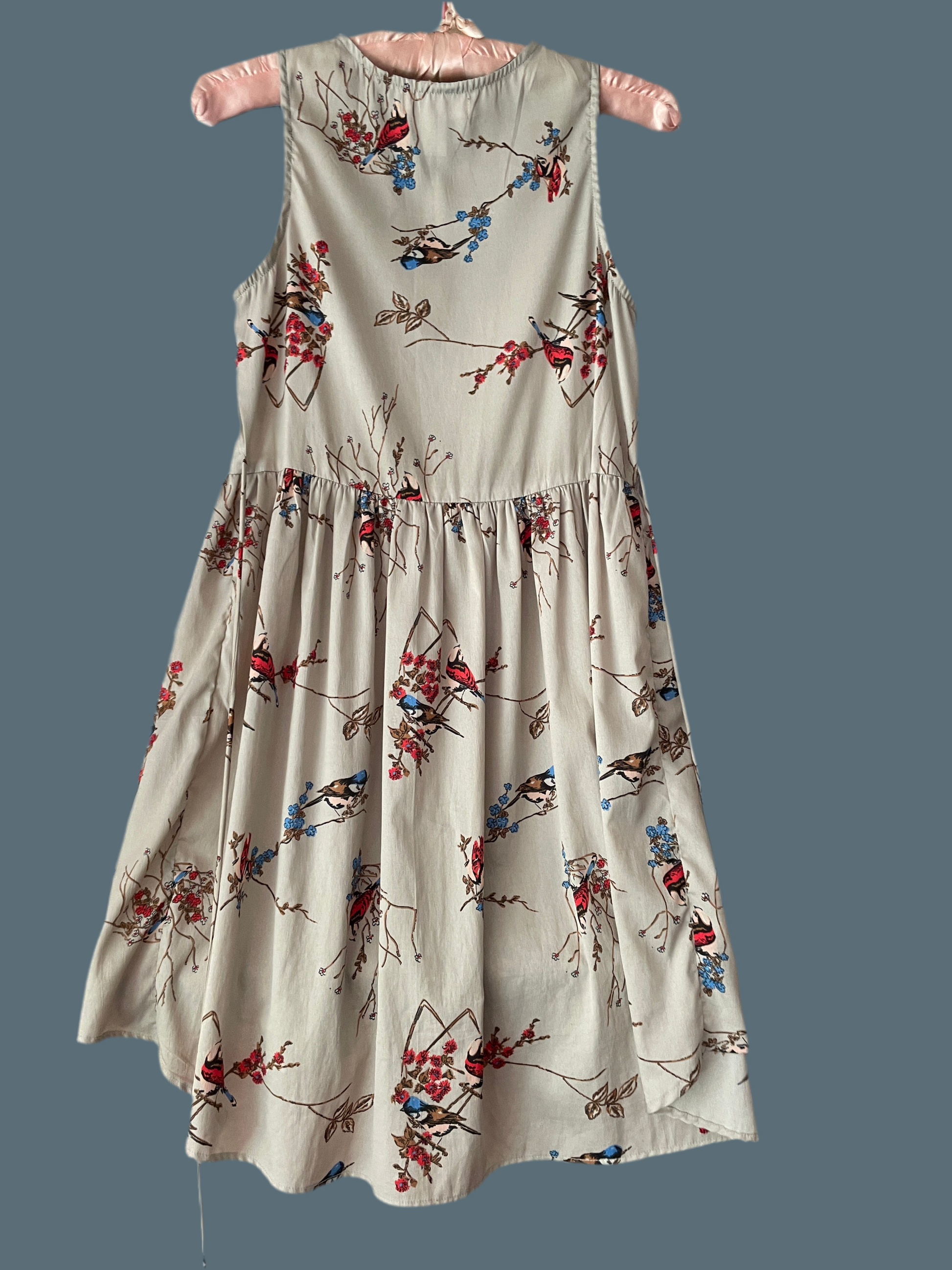 This bird print dress from the 2000s captures motion and melody in one piece. Its collared neckline and high-low hem make it playful yet polished—like a breeze you can wear.