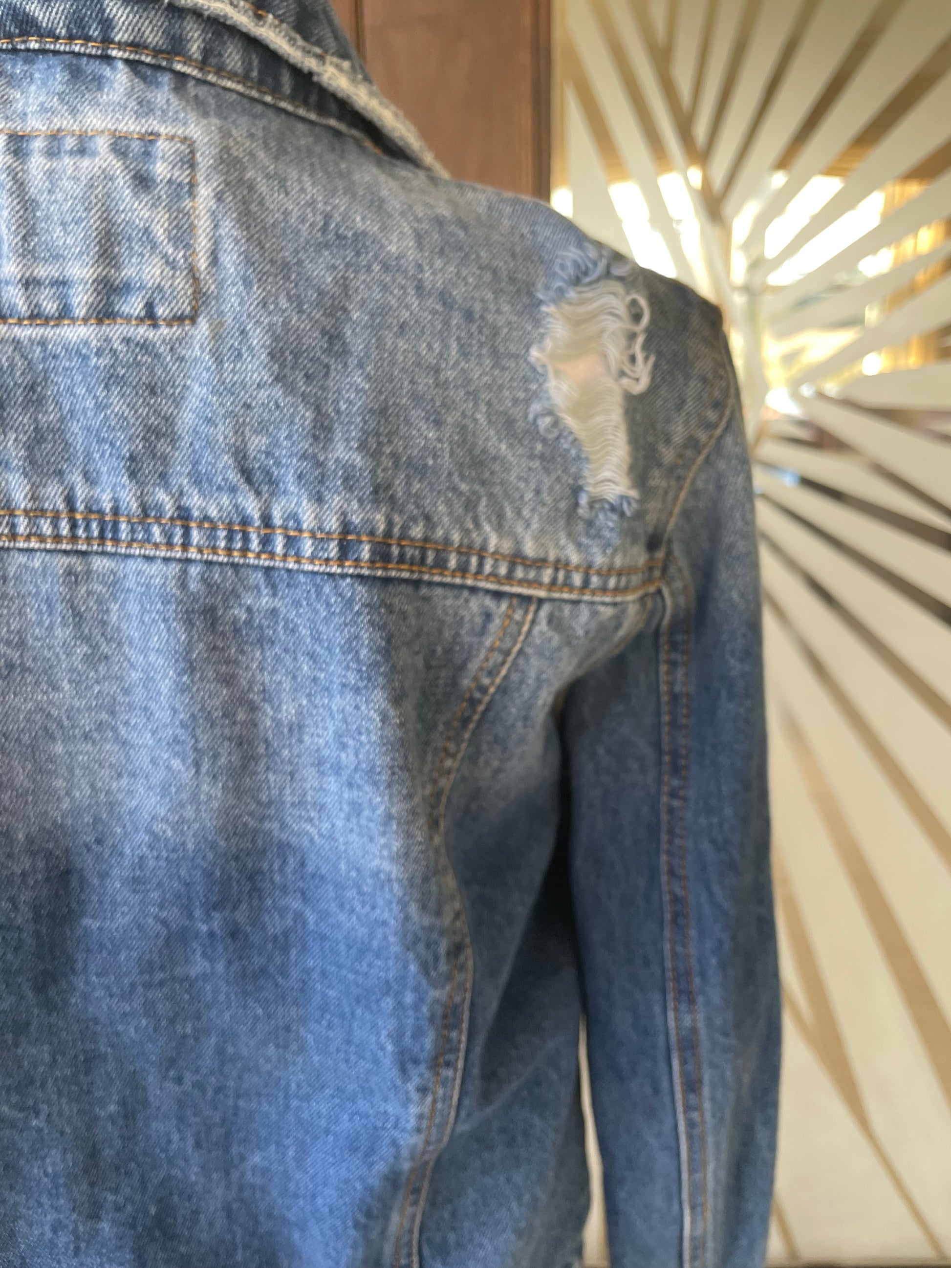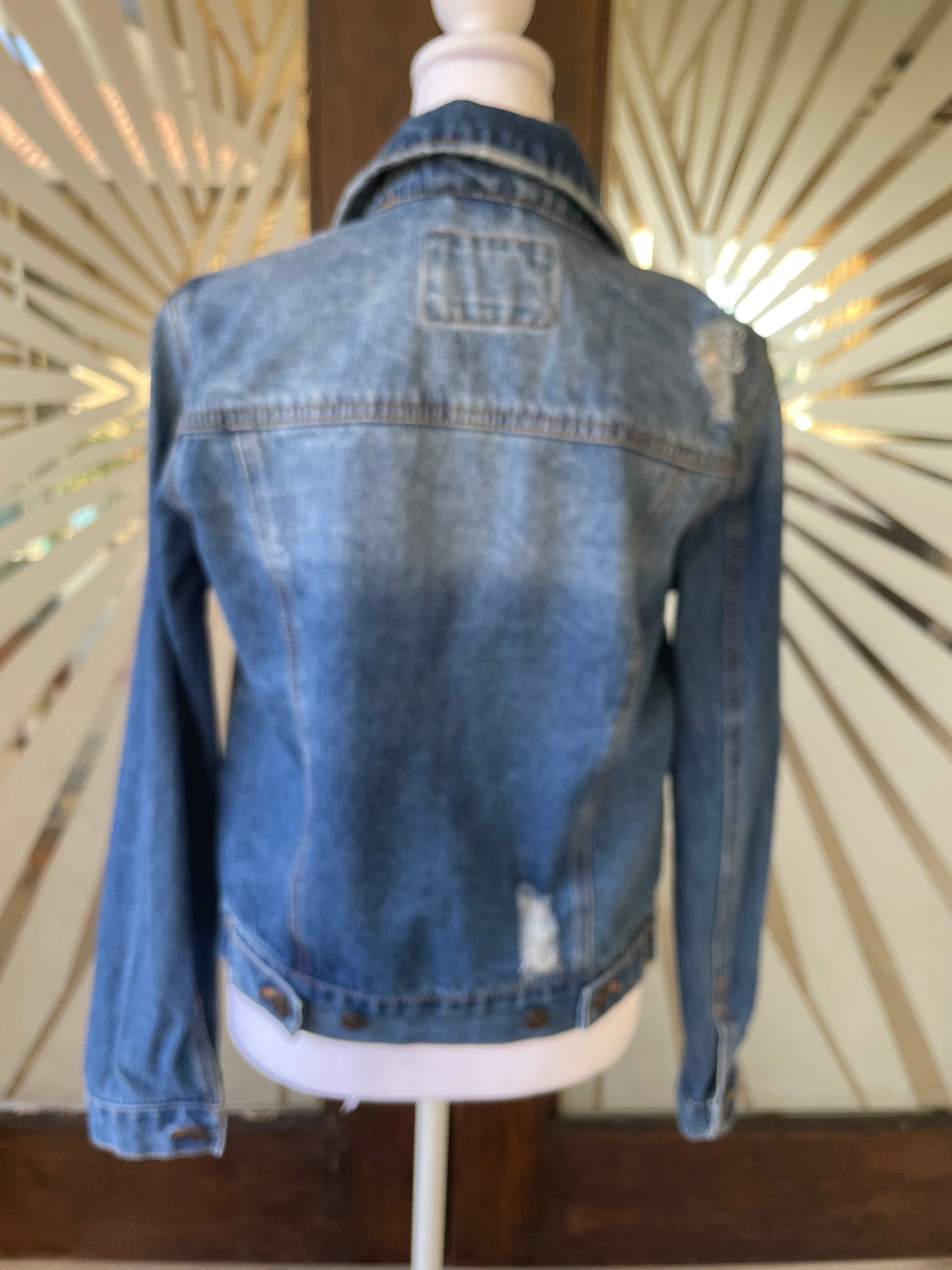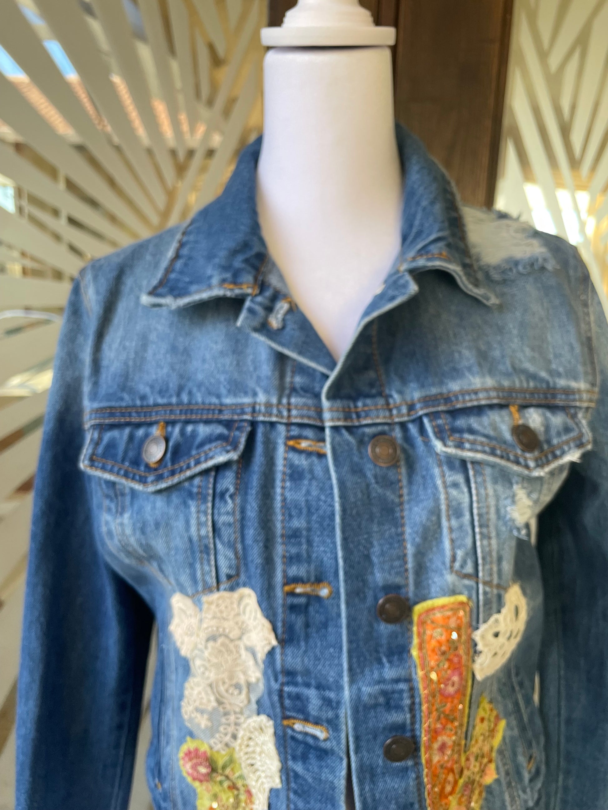 Hand sewn appliqué detail. Forever 21 denim jacket.