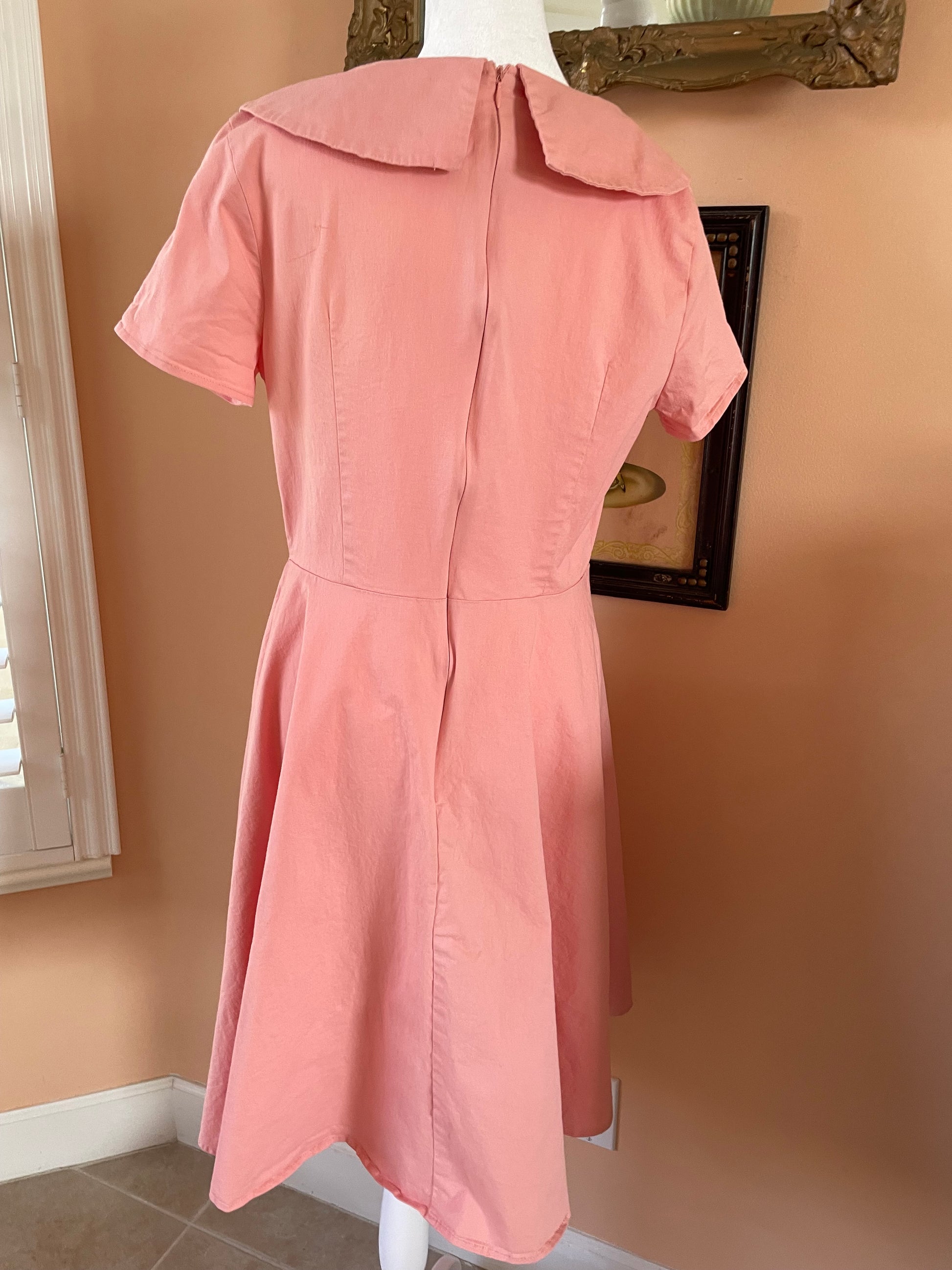 Early 2000s Cotton flare dress. Back zip closure. Button accent. Short sleeve.