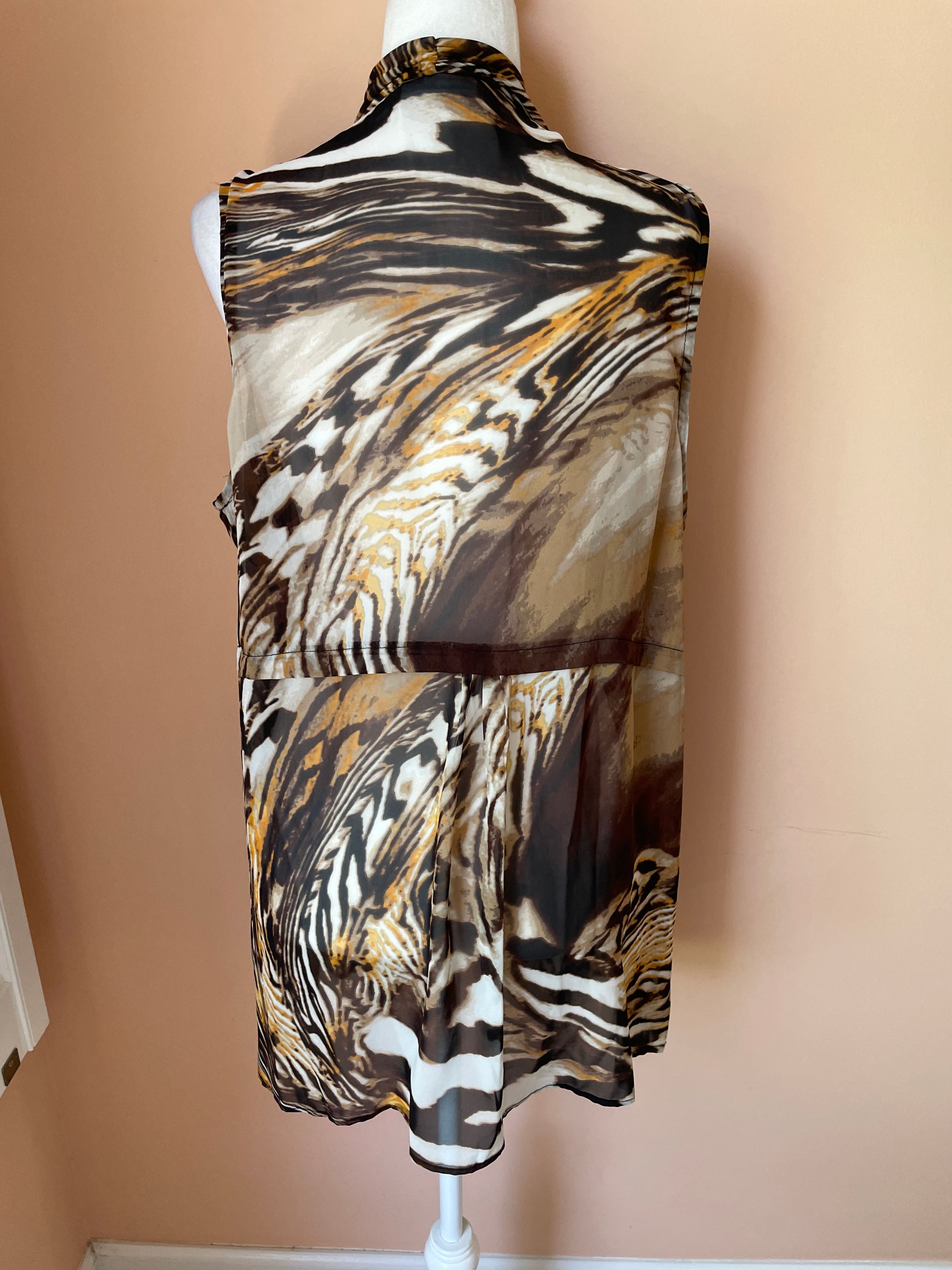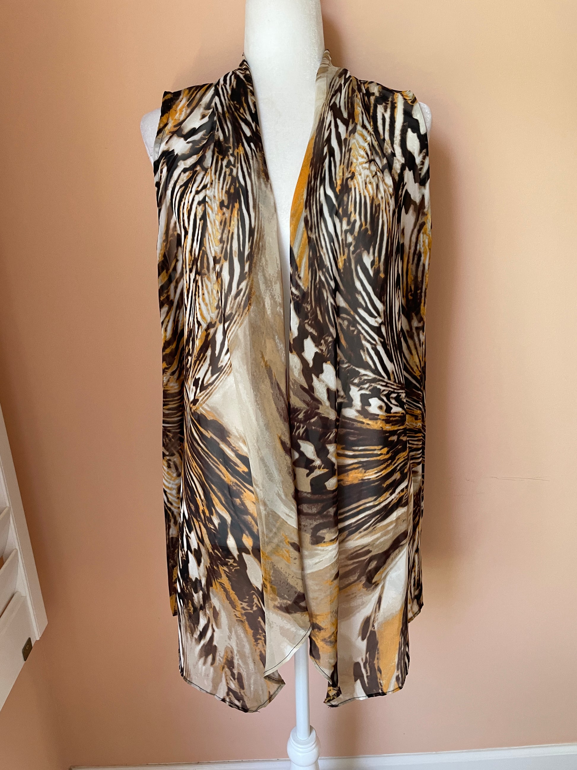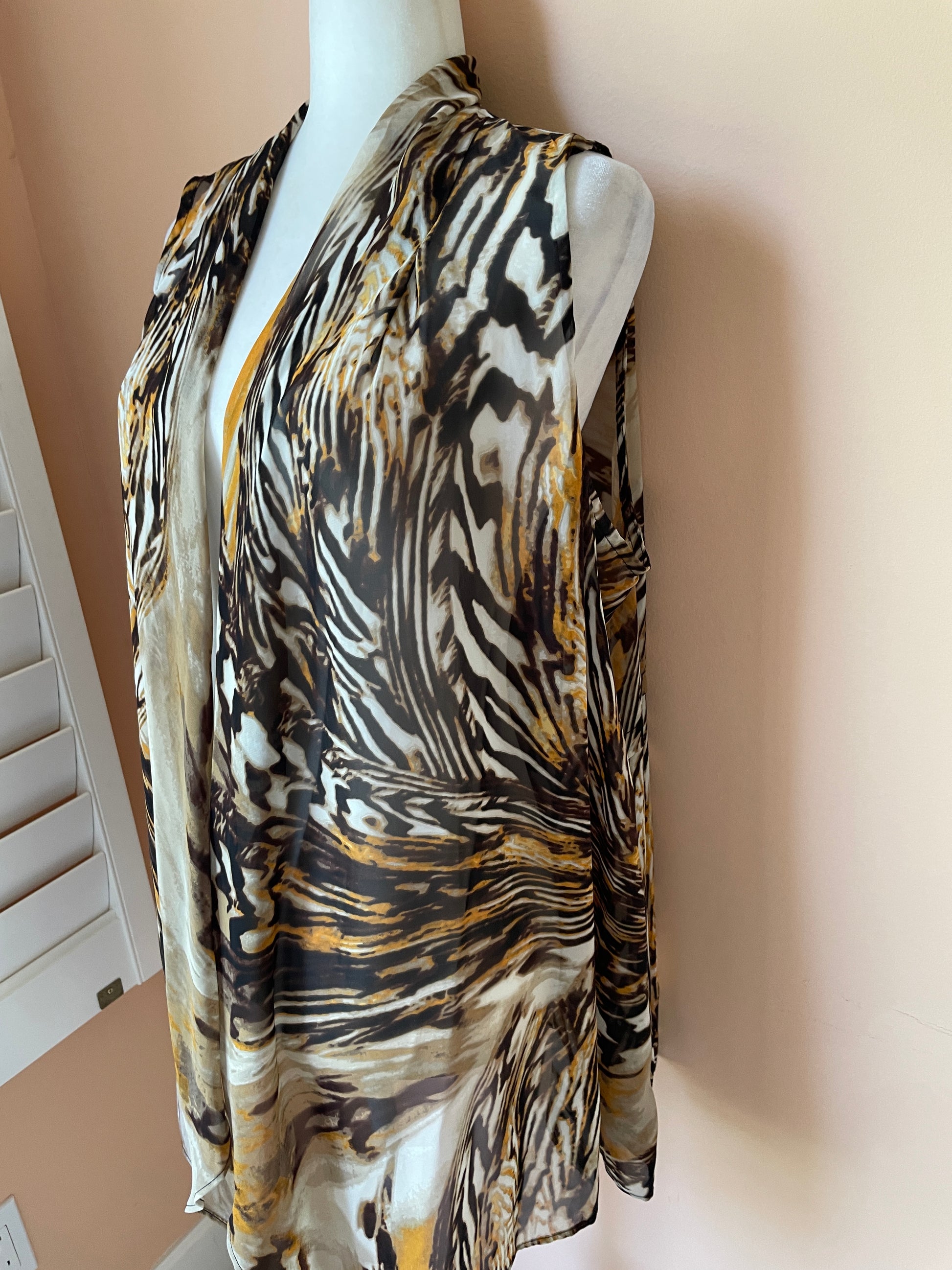 2000s Abstract Animal Print Open Front Stylish Sleeveless Vest Top Lg