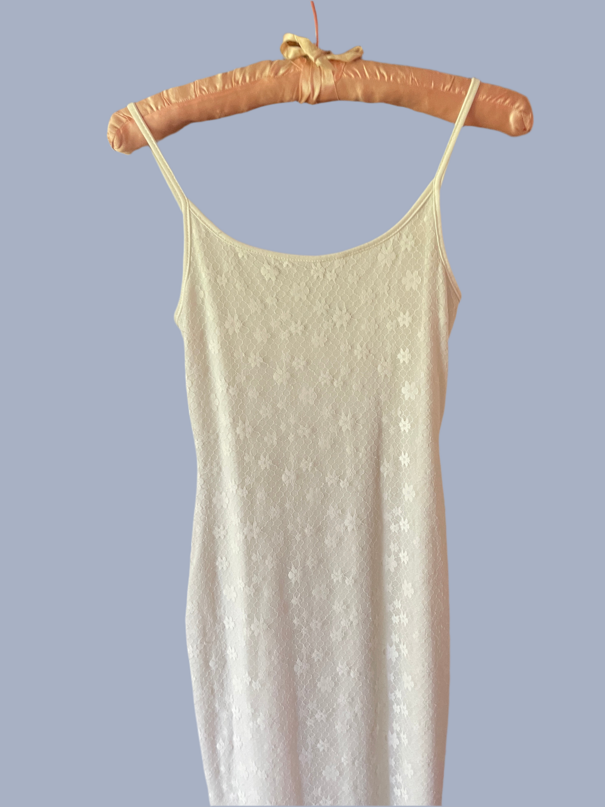 2000s Dreamy Flowers of White Summer Maxi Dress M/L