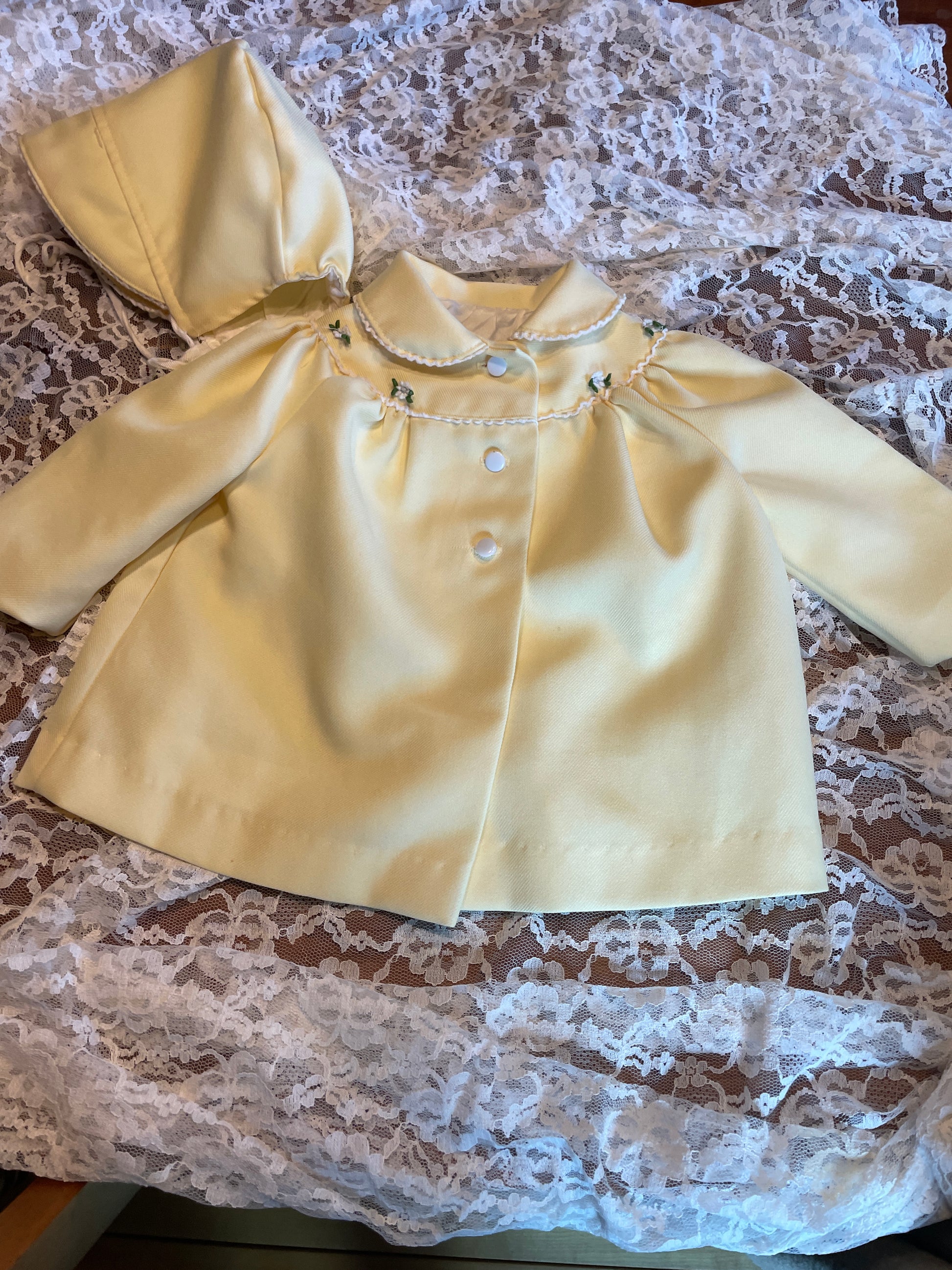 50s Vintage Handmade Yellow Sweet Baby Girl Jacket & Bonnet
