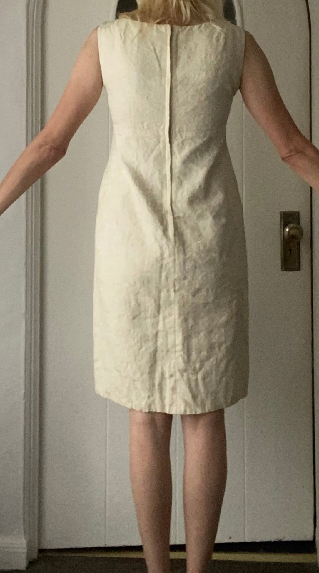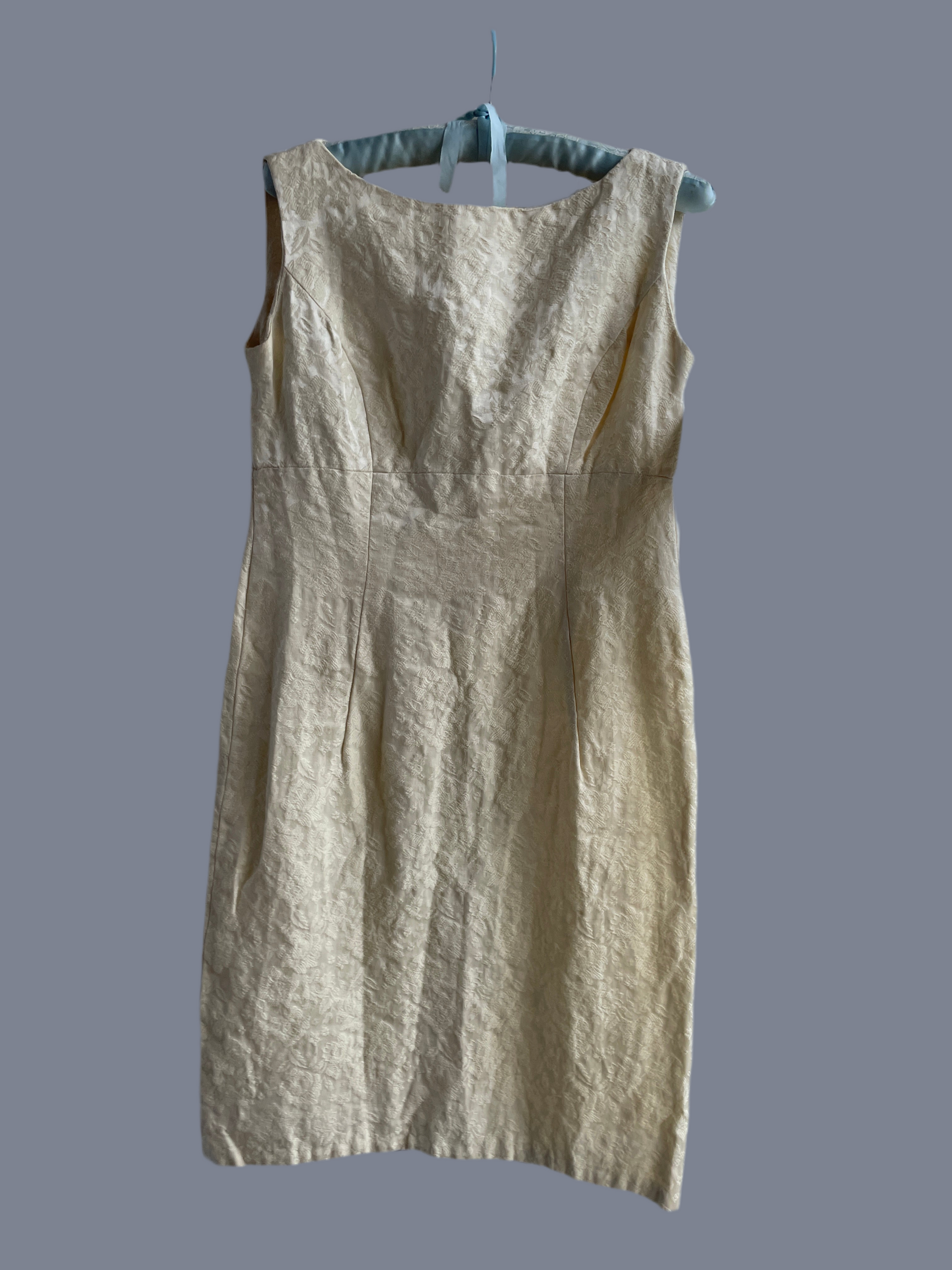 60s Vintage Handmade Poly Floral Brocade Sleeveless Cream White Lovely Dress S