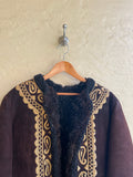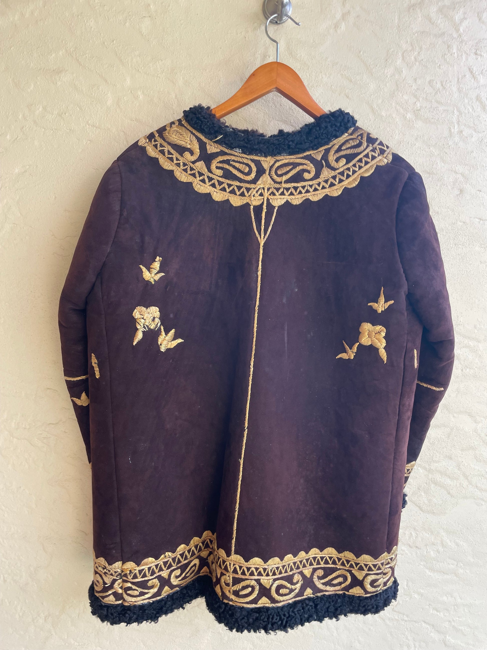 Rare decorative amazing vintage coat. Curly black Sheep wool lining will keep you very warm.