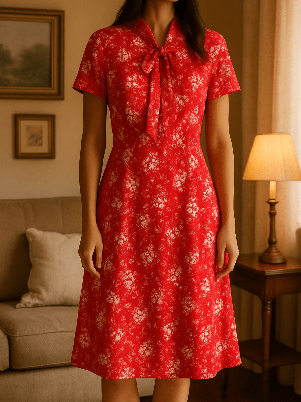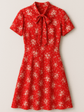 Handmade charm meets timeless femininity in this red and white floral dress with a delicate neck tie that moves with every step.