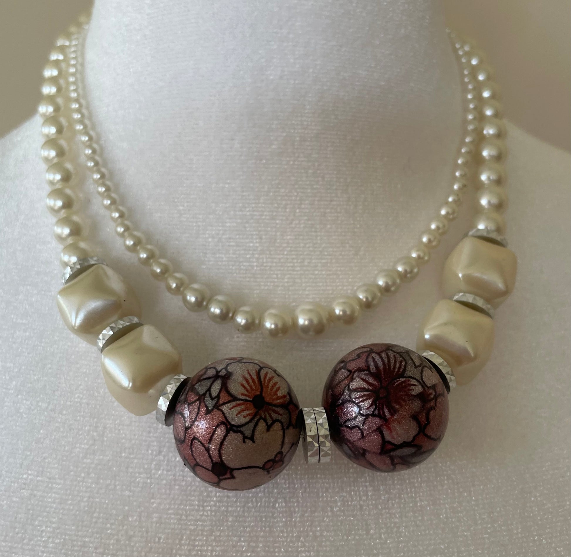Love vintage choker necklaces wear alone or layer up. Beautiful faux pearl beads. Chunky & delicate. Authentic timeless 80s style. Have your own creative style. Large necklace has a toggle closure. Delicate choker has spring clasp closure.