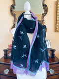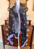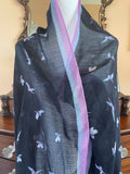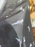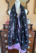 80s Vintage Black Flying Bird Print Rectangular Large Scarf.