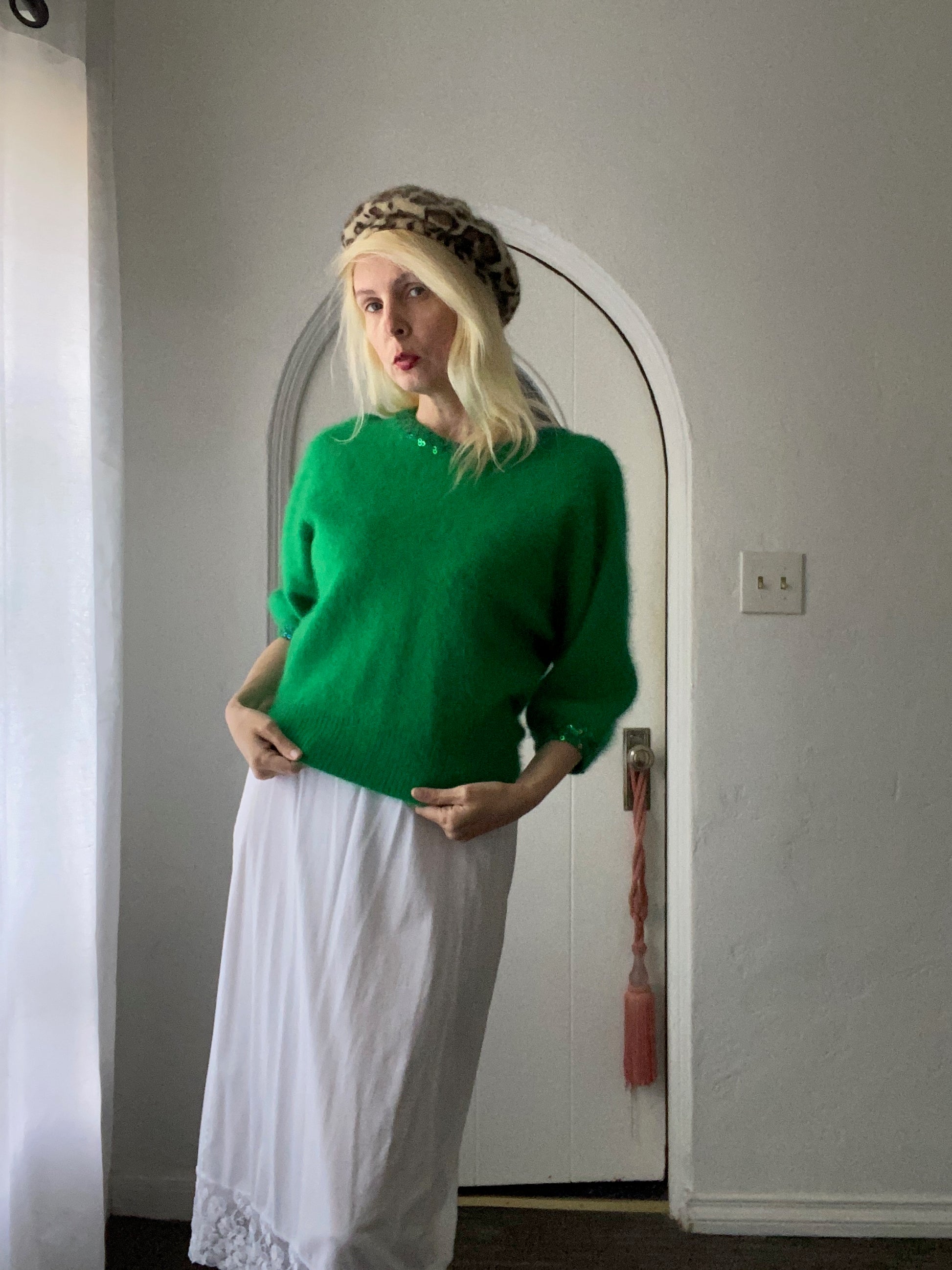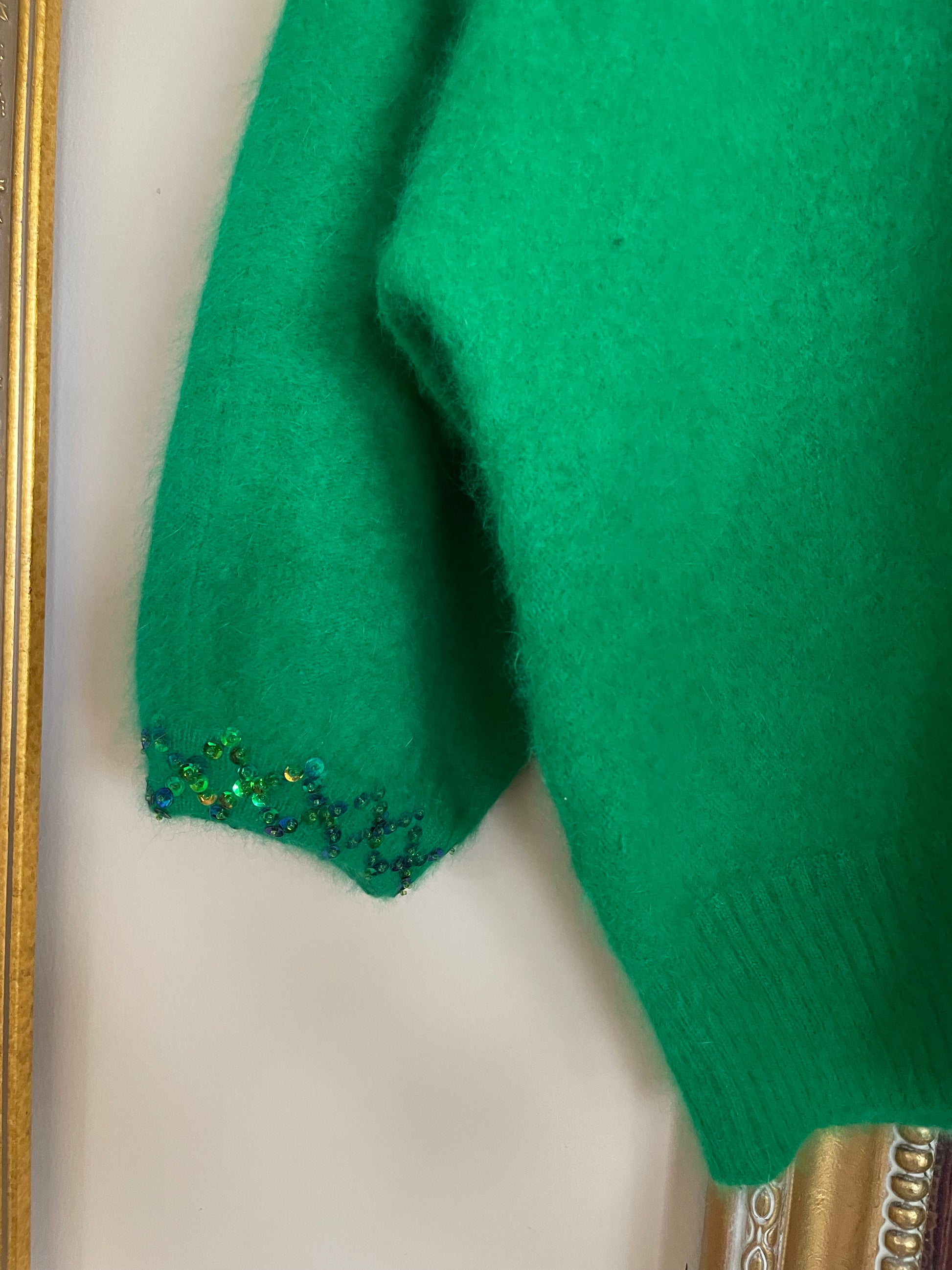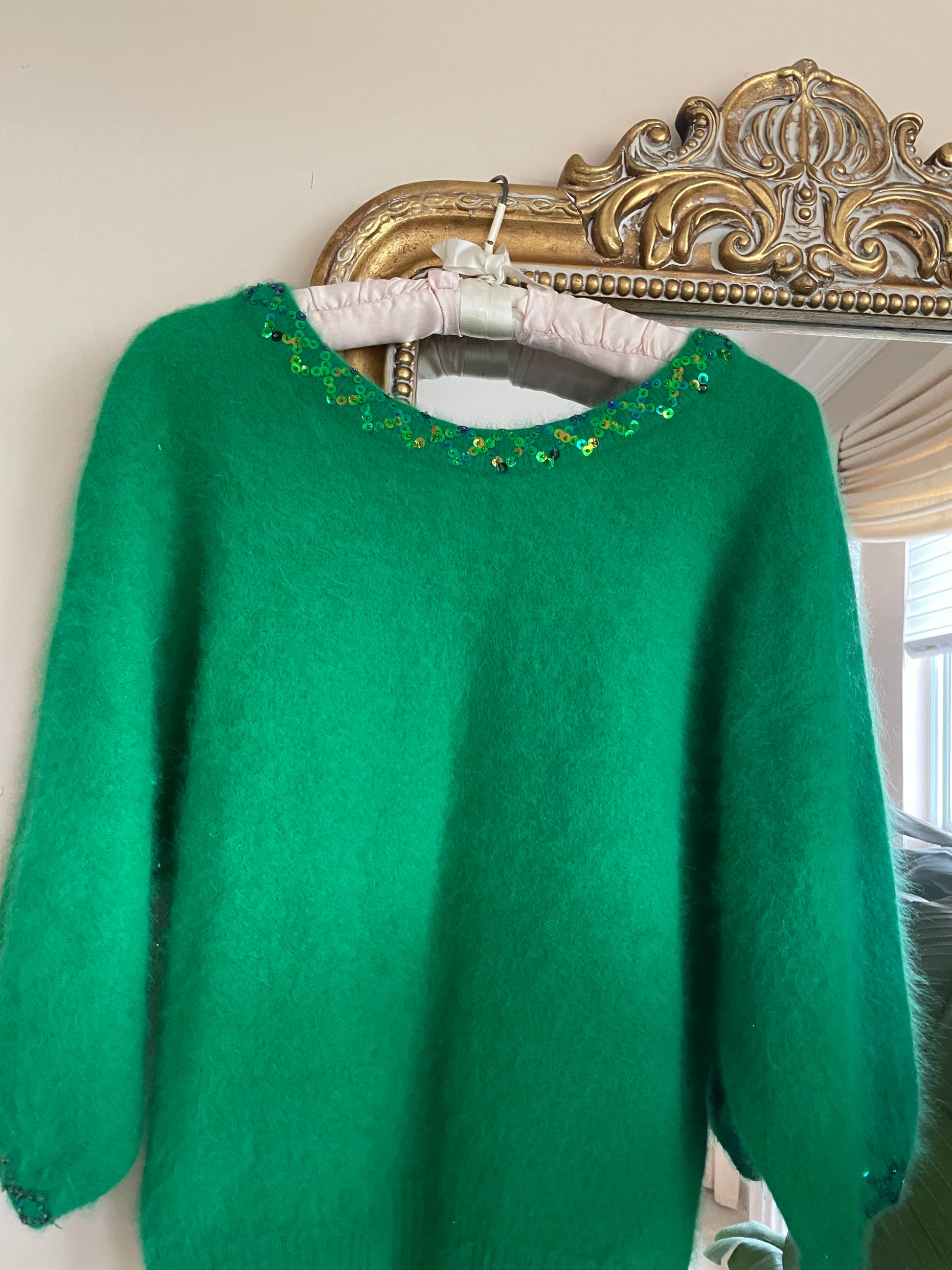 80s Vintage Gorgeous Lush Angora Green Sequined Sweater Med