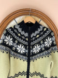 80s Vintage Hand Knit Lambswool Angora Snow Flake Zip Cardigan Sweater. S/M
