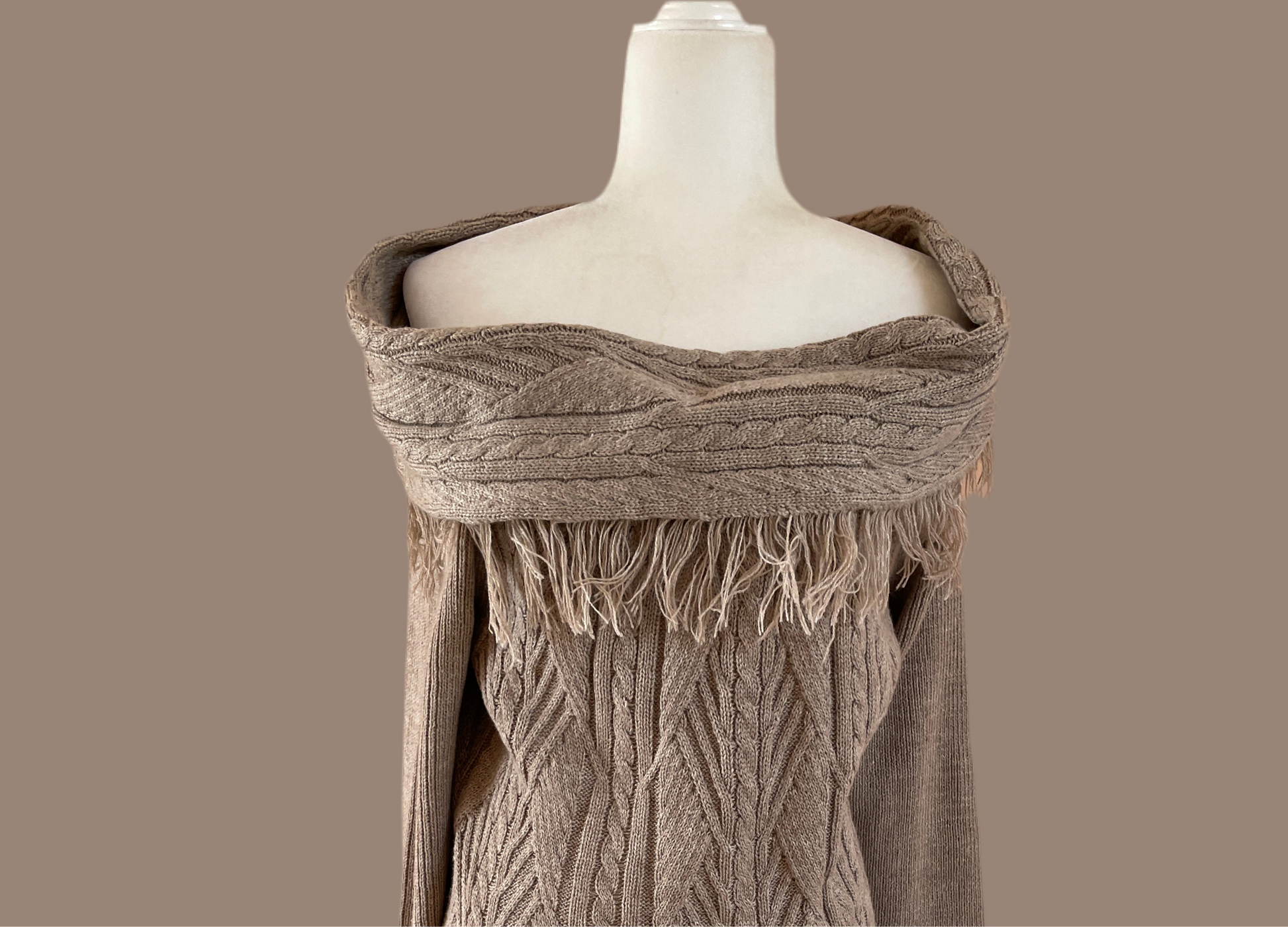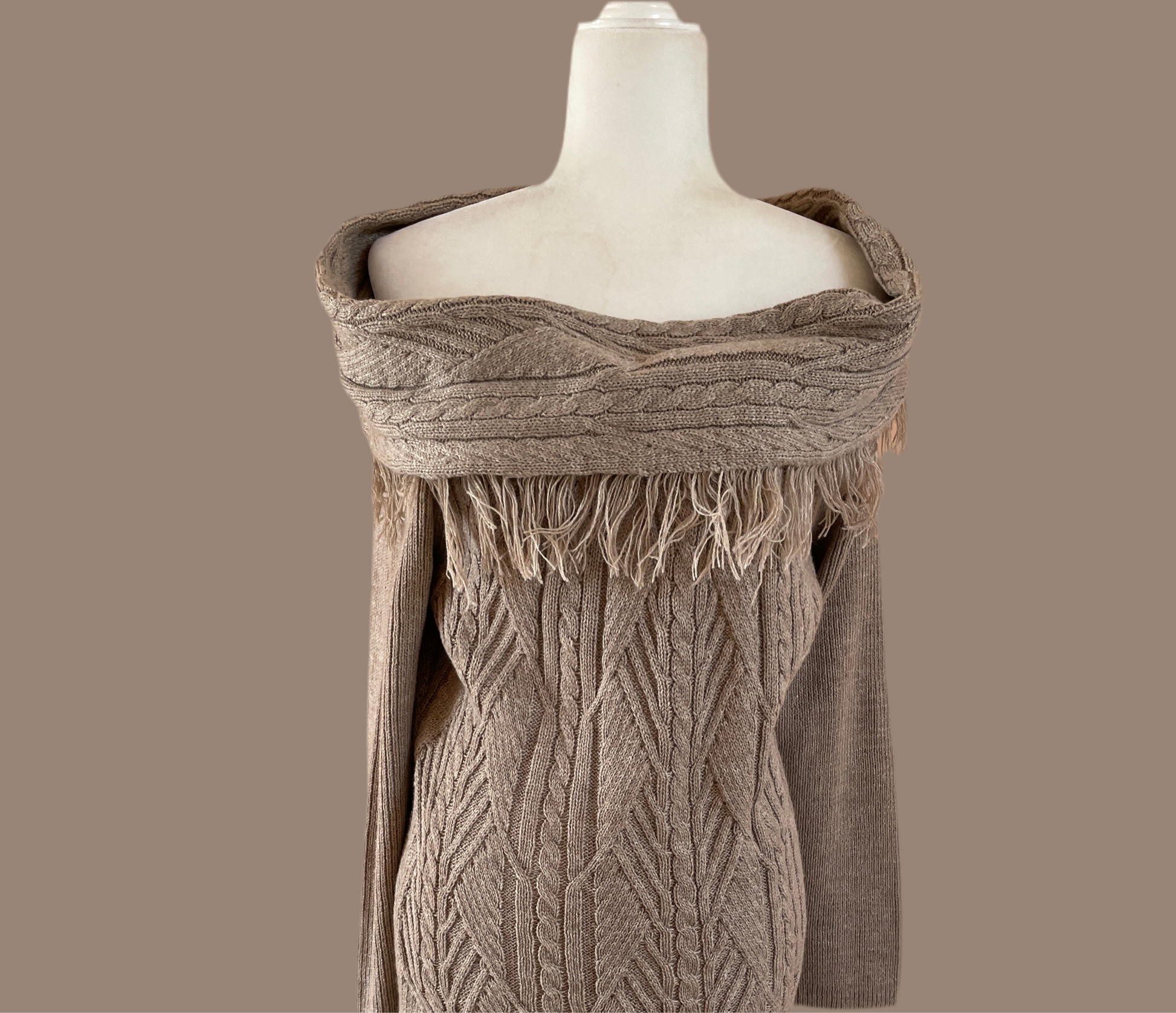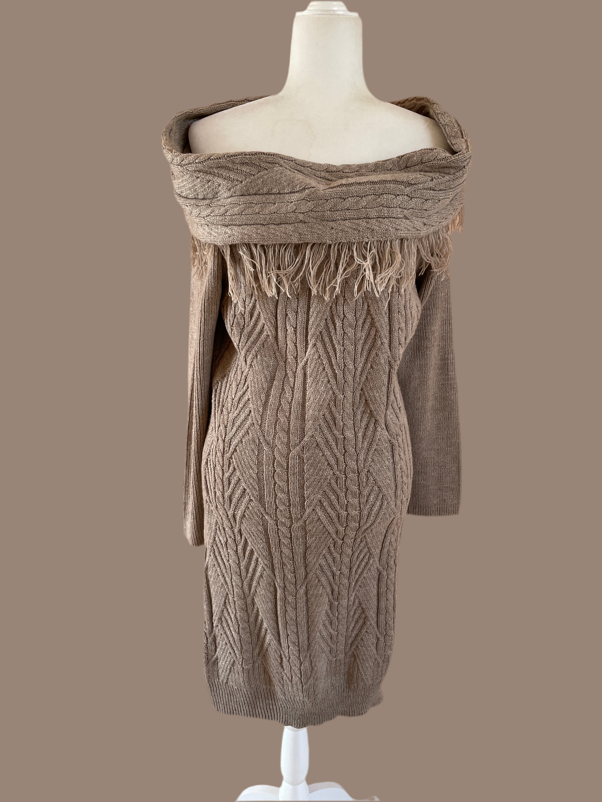 90s Vintage Fringed Stylish Knit Sweater Dress L