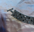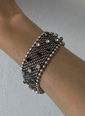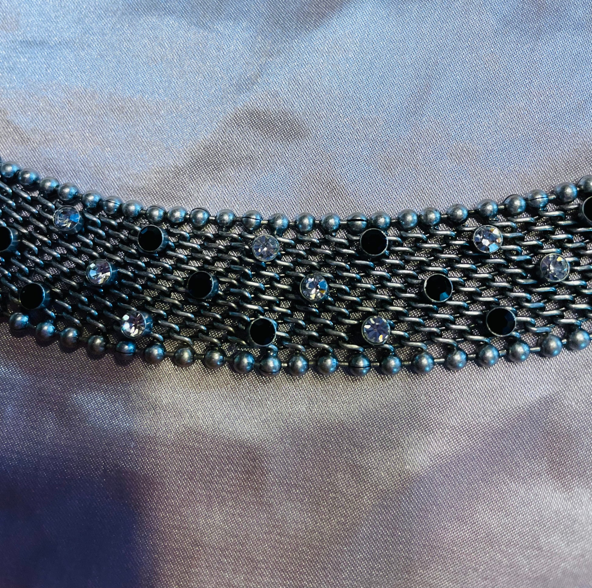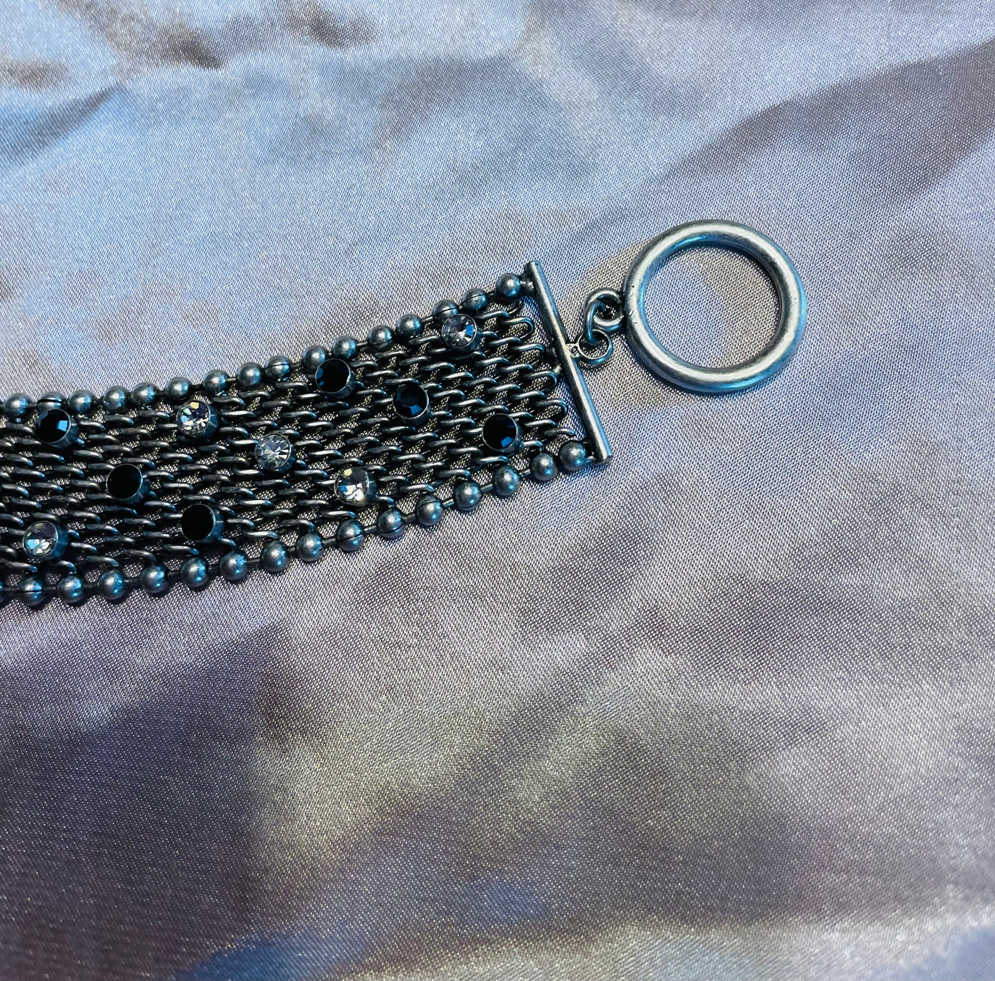 90s Silver Tone Mesh Black Gray Rhinestone Bracelet
