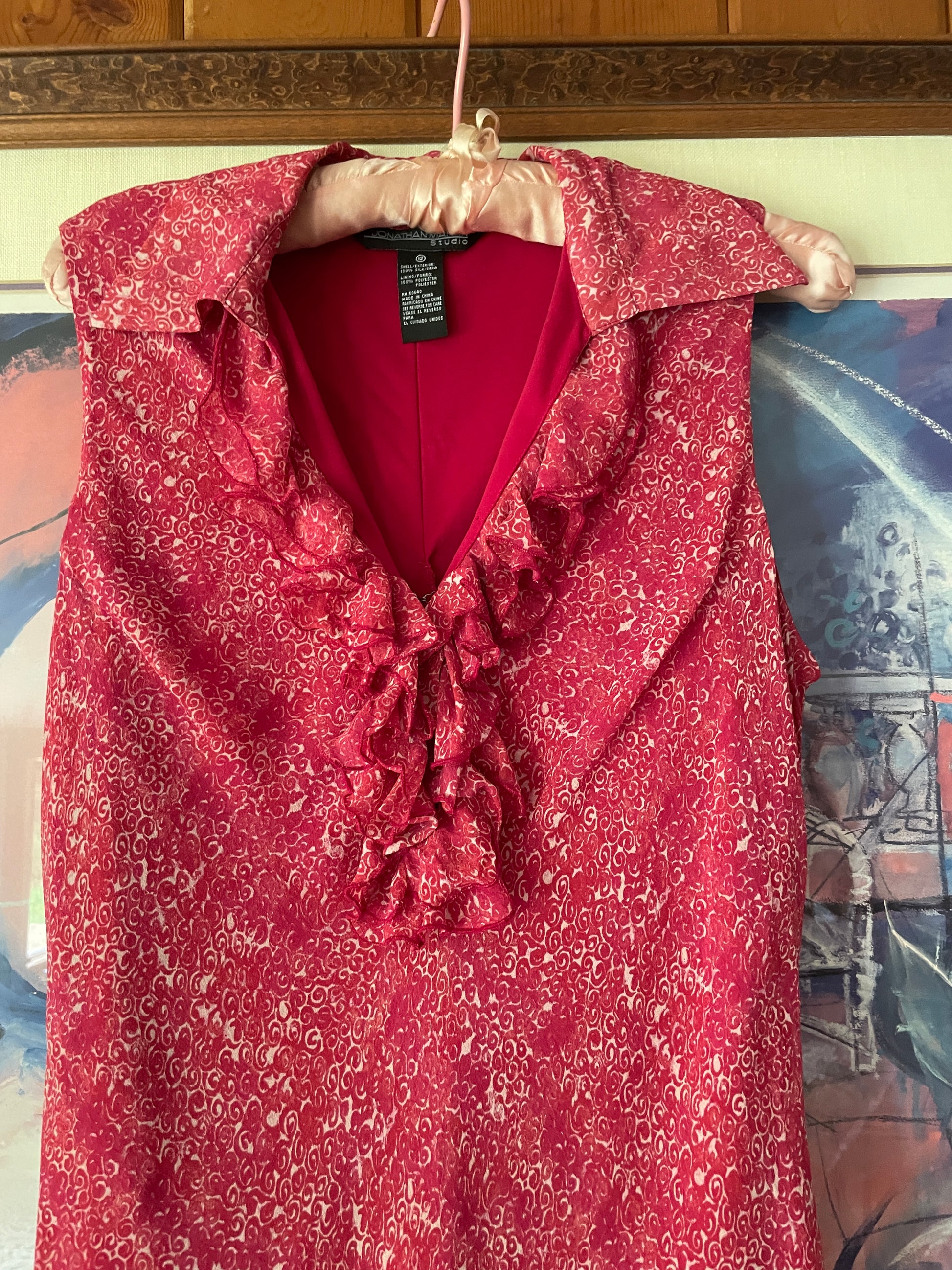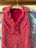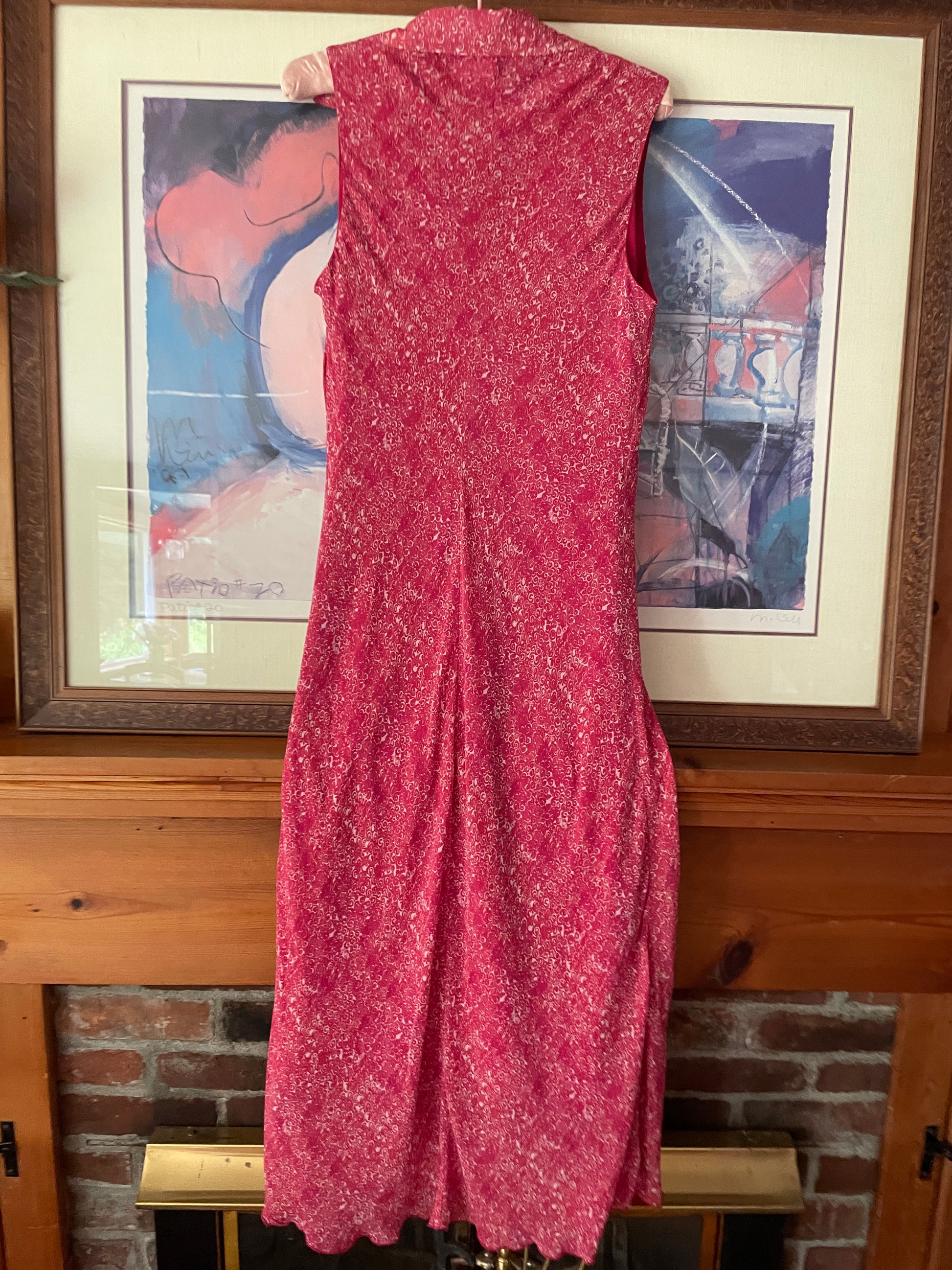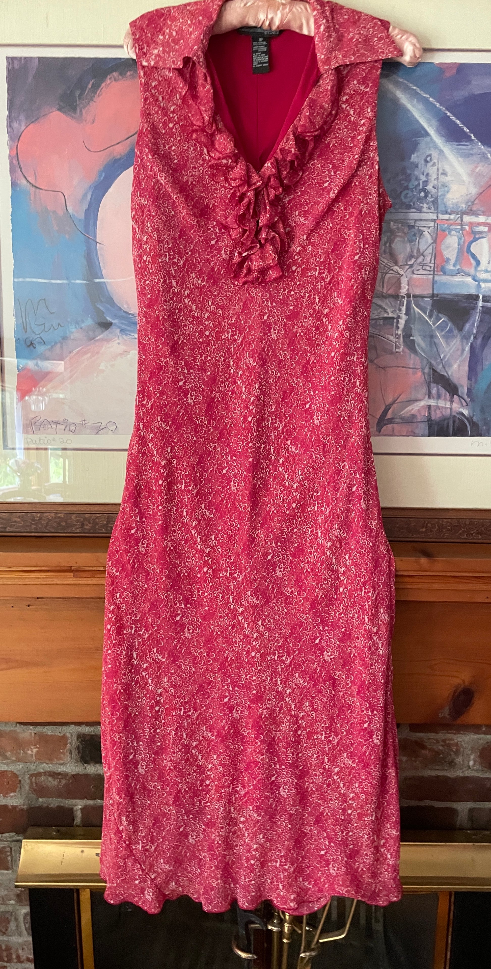 90s Vintage 100% Silk Print Sleeveless Ruffled Neckline Long Dress M/L