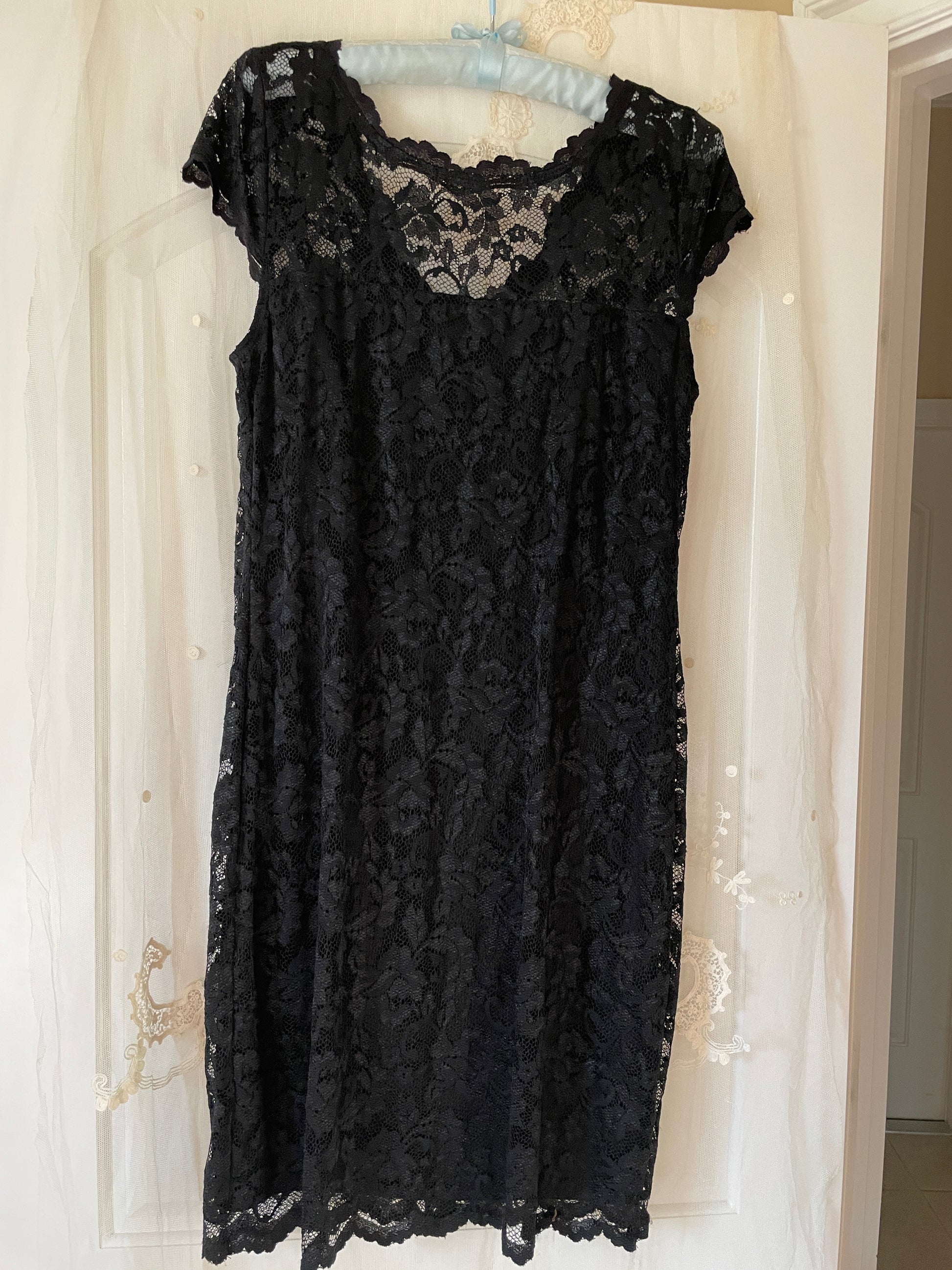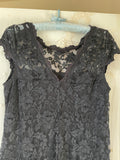 90s Vintage Black Lace Lined Knee Length Lined Cocktail Party Dress M