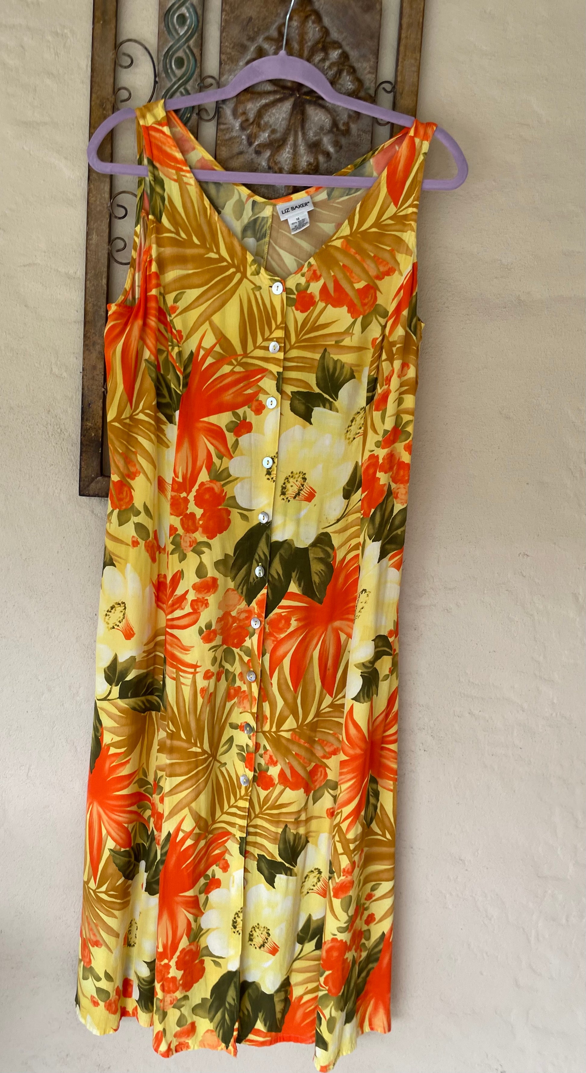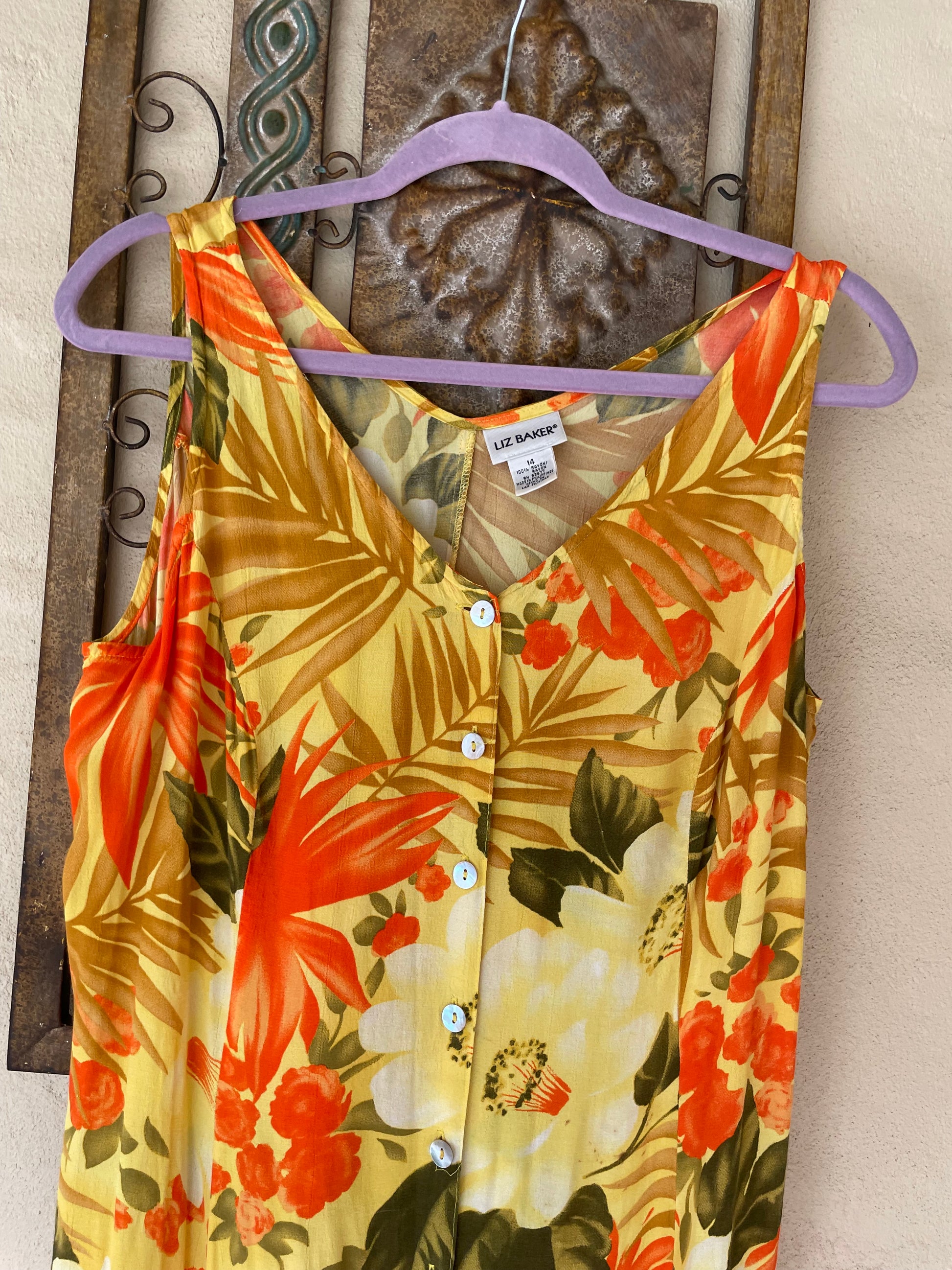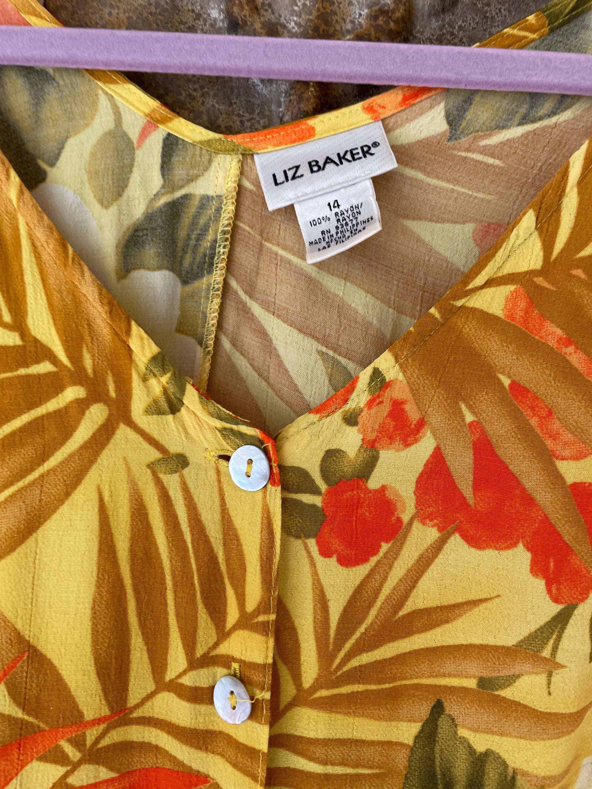 Features. 100% rayon. Button down front. Floral.