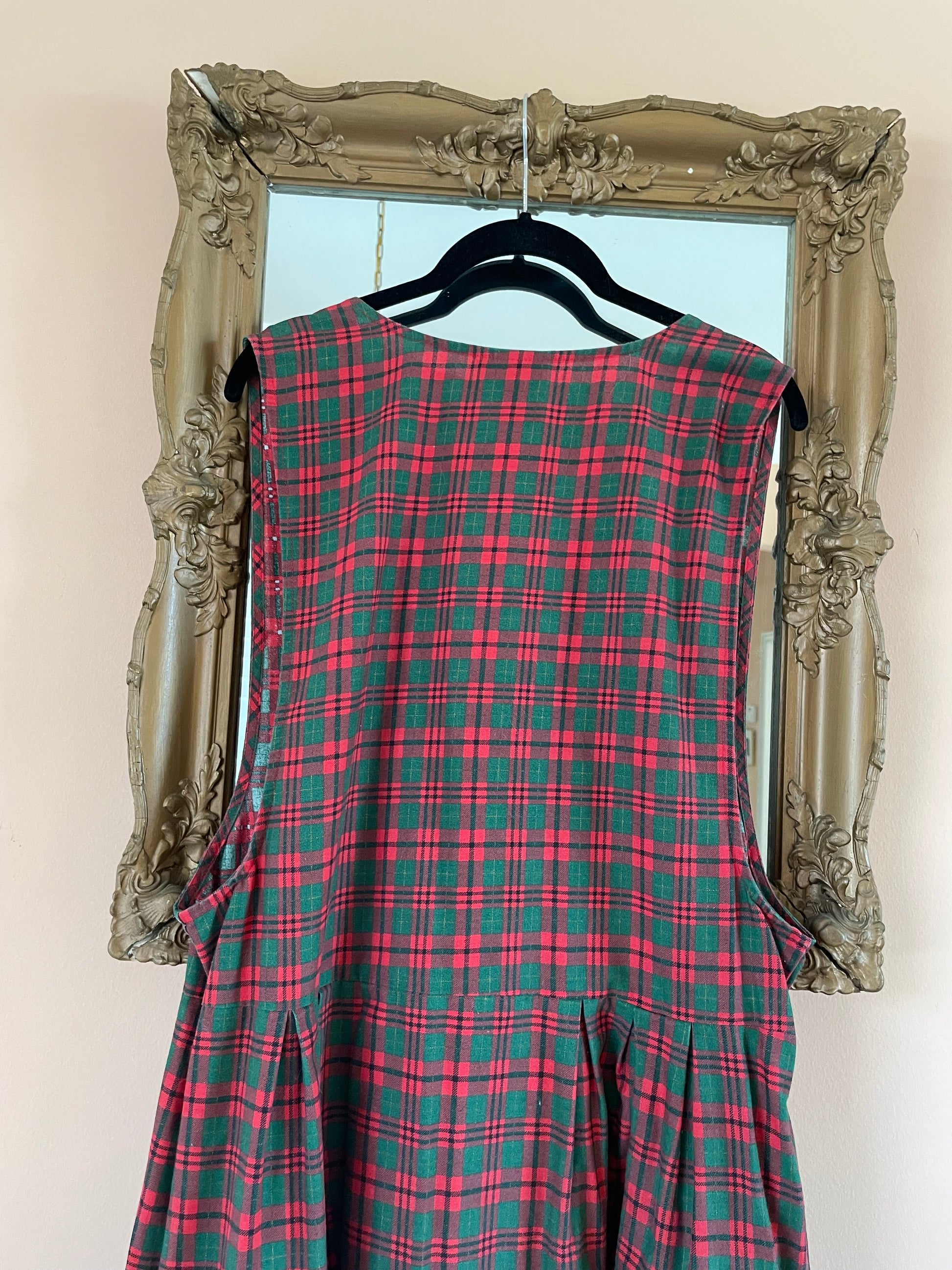 90s Vintage Passion for Plaid Button Front Side Pockets Midi Jumper Dress M