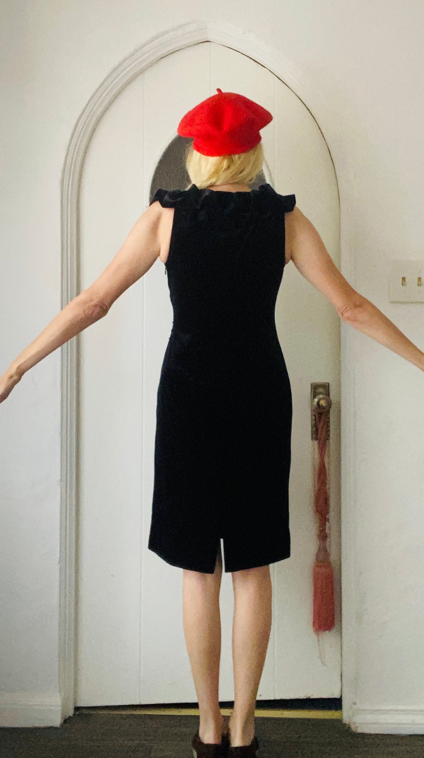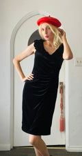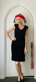 Adrianna Papell 2000s Fitted Knee Length Ruched Black Velvet Cocktail Dress S