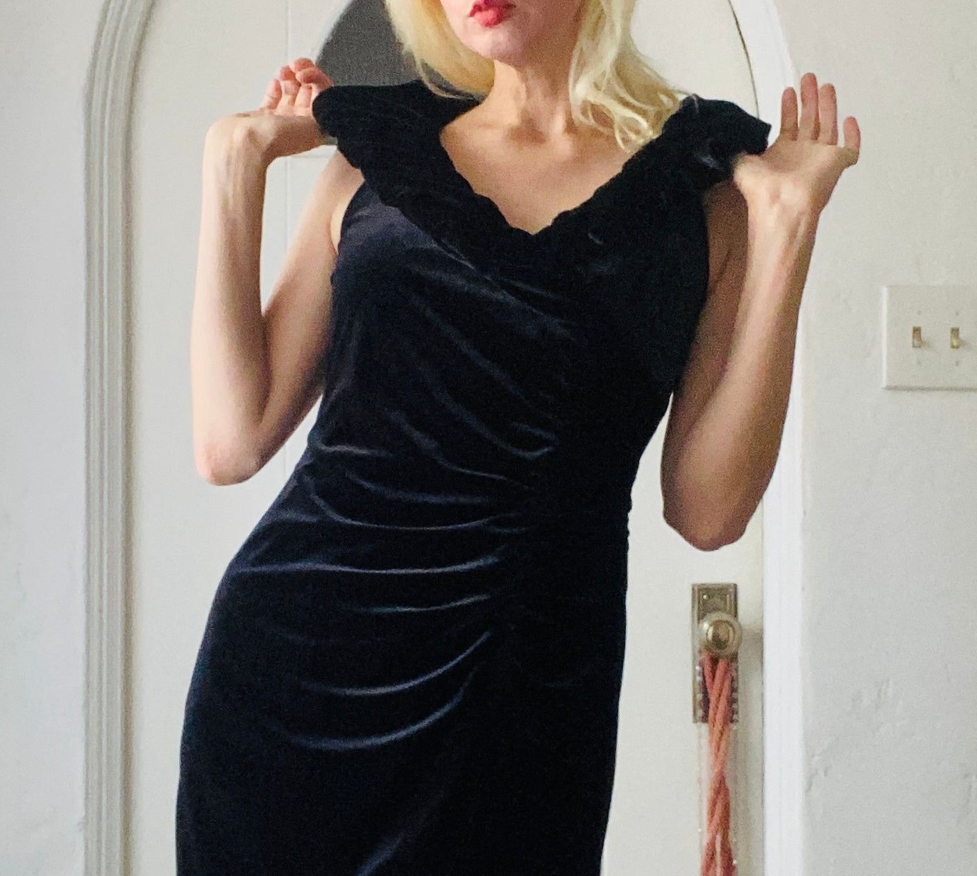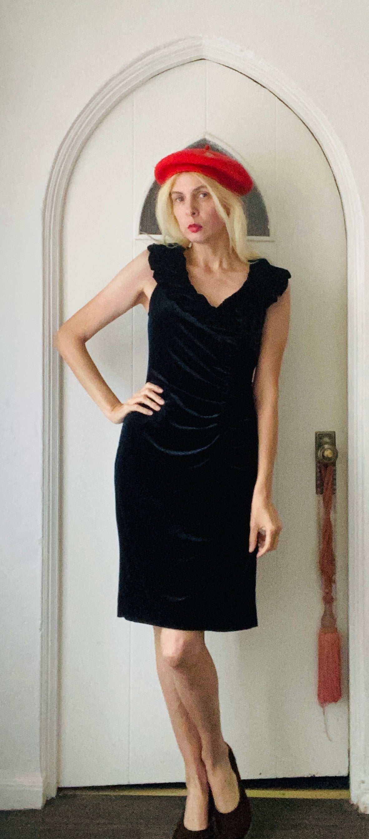 Adrianna Papell 2000s Fitted Knee Length Ruched Black Velvet Cocktail Dress S offers a black tone dresses that feels considered, comfortable, and ready for repeat wear.