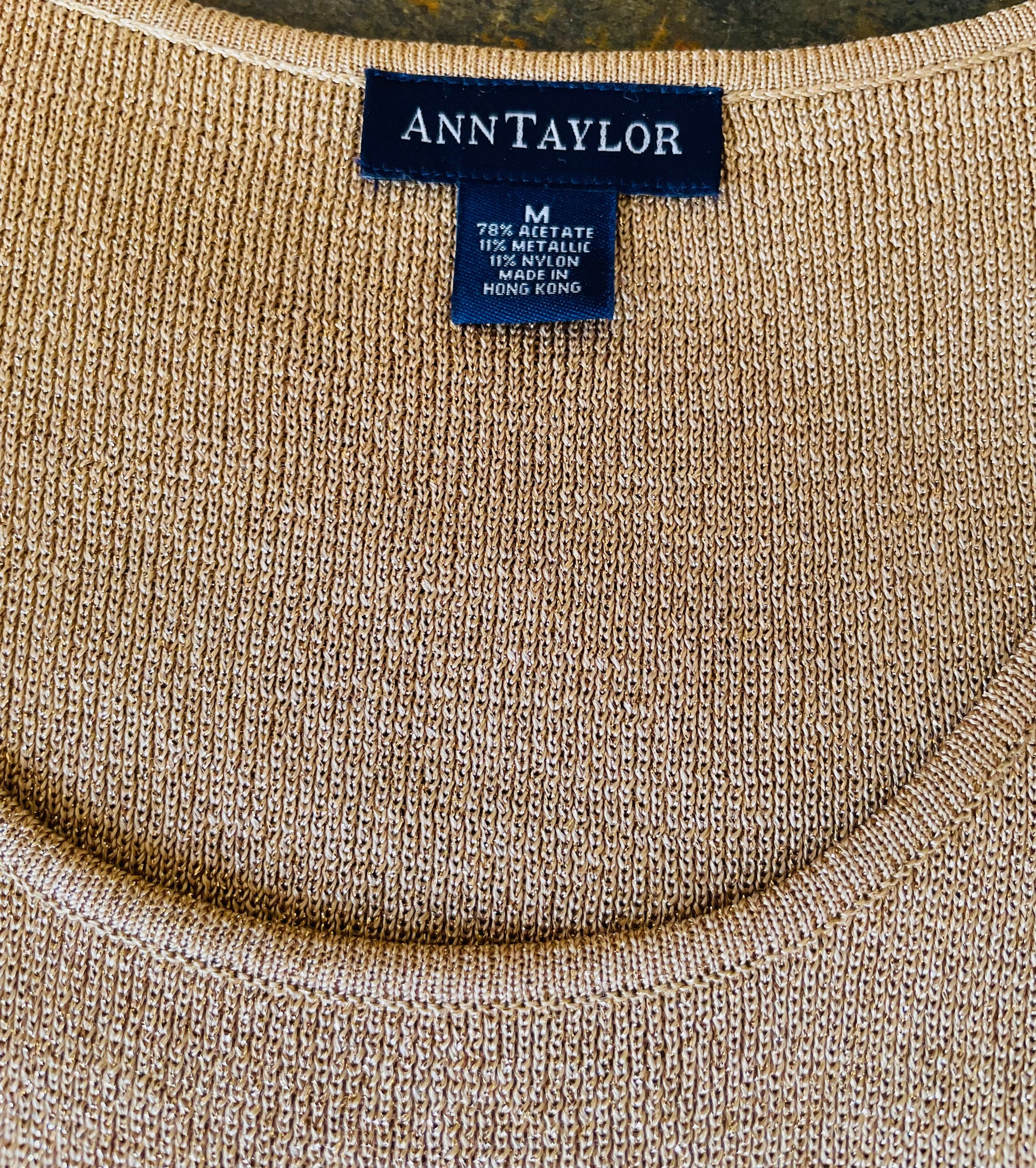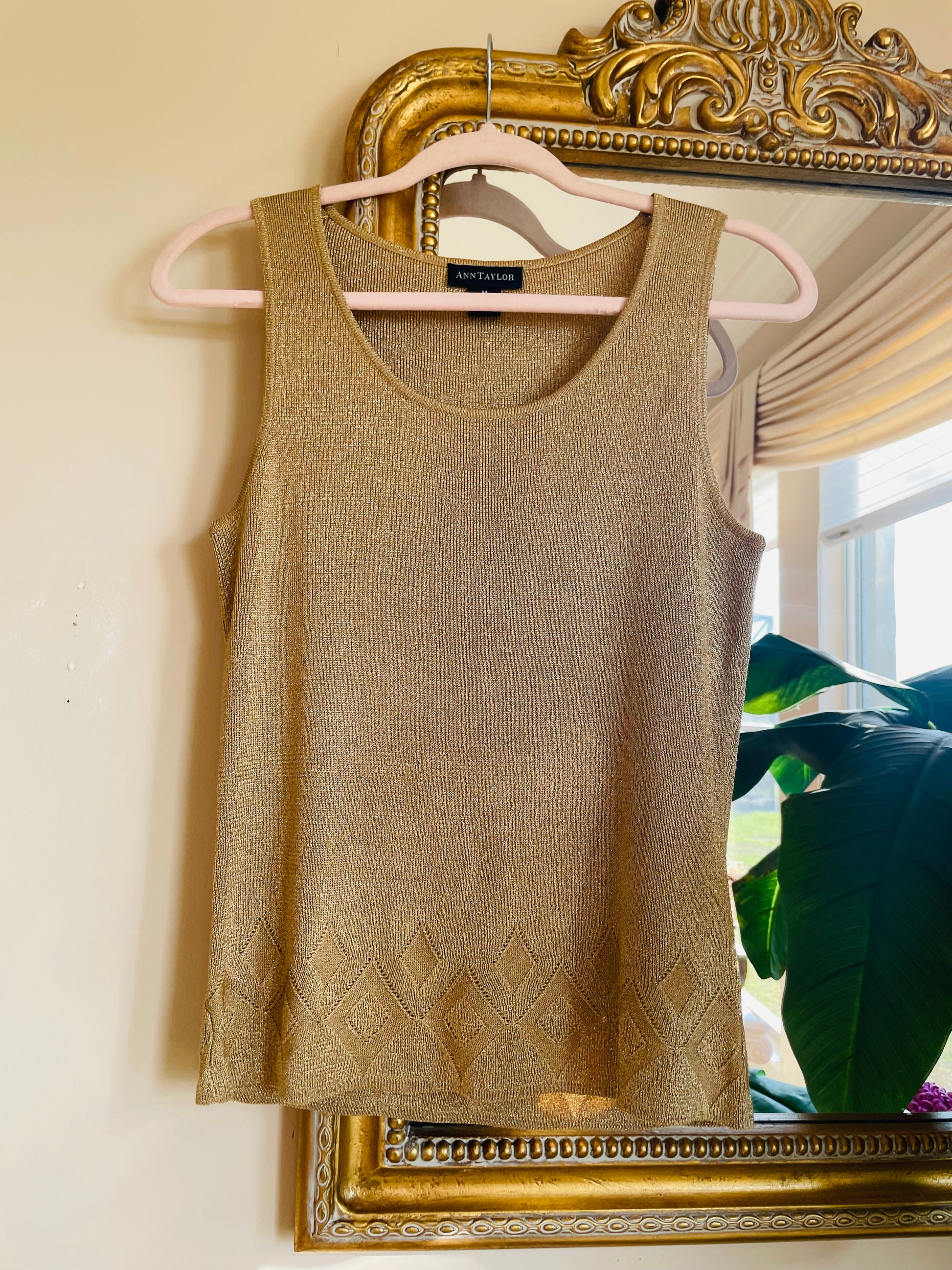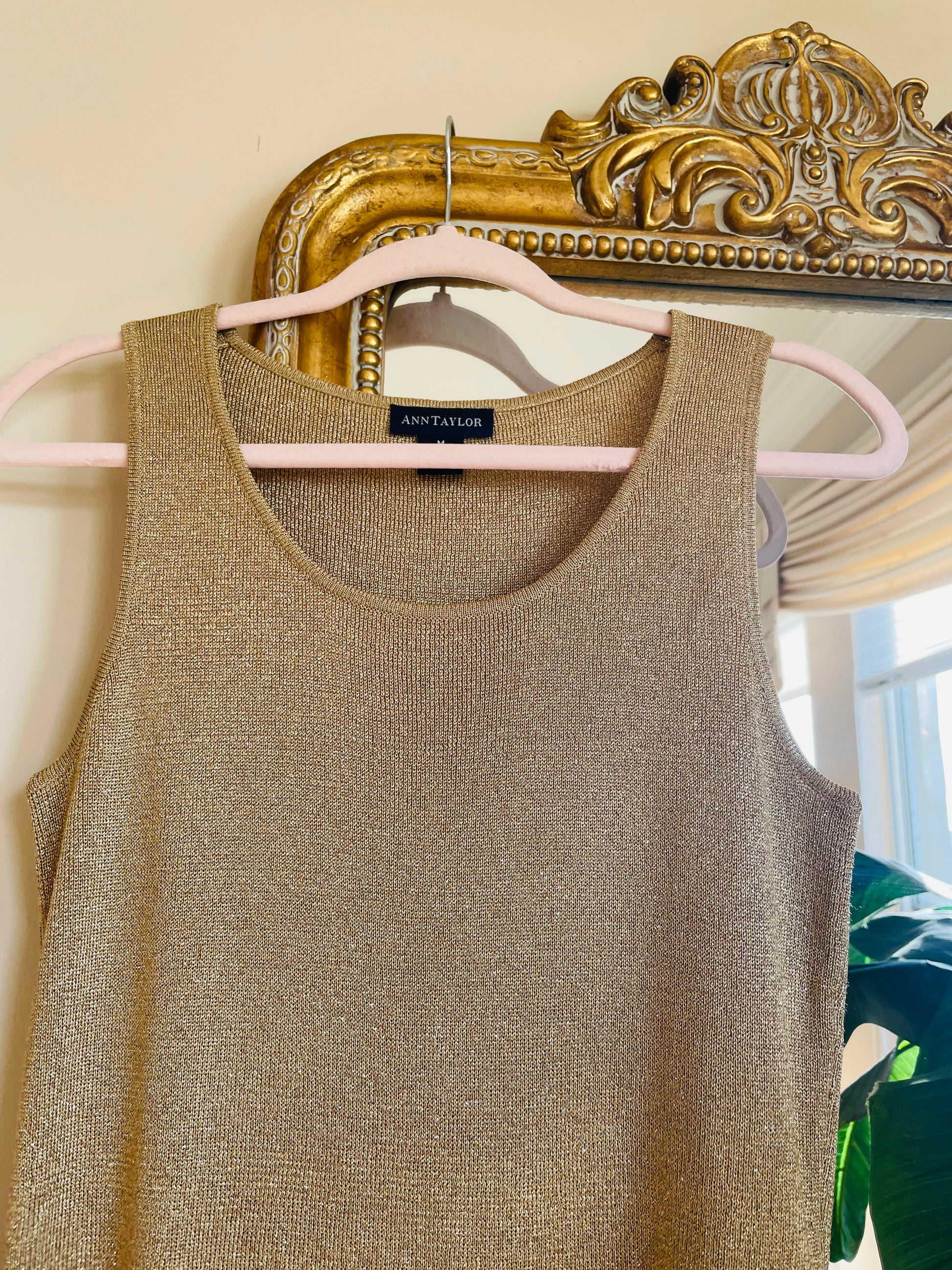 Ann Taylor Shimmering Gold Tone Sweater Top S/M