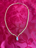 Avon Brand Gold tone chain with pear shape clear pendant Necklace. Beautiful. Fold over clasp closure 15” length Excellent condition Comes with gift box