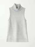 This light blue ribbed cotton turtleneck top blends comfort with modern minimalism. Its deep armholes and longer cut give it an effortlessly relaxed edge.