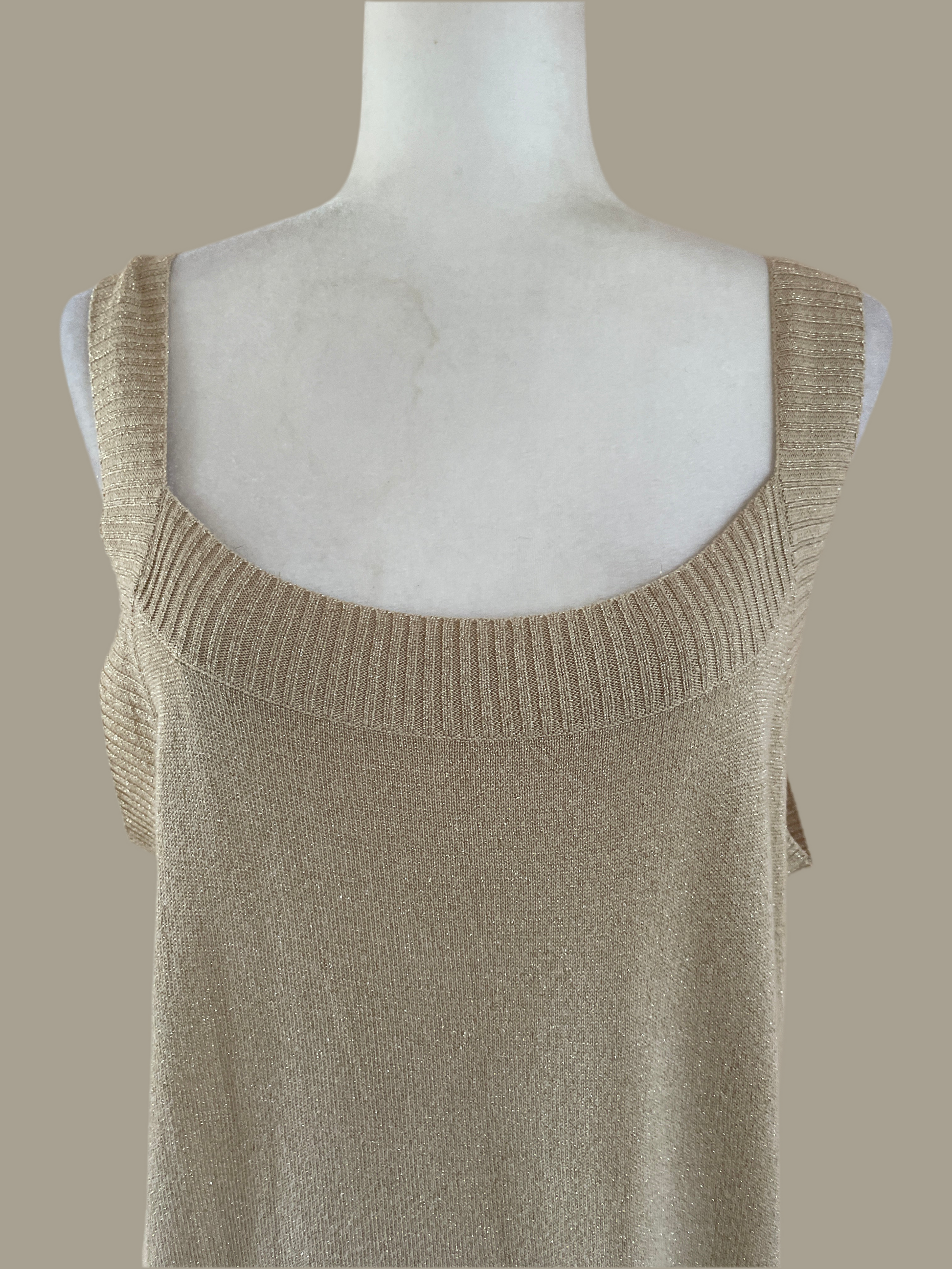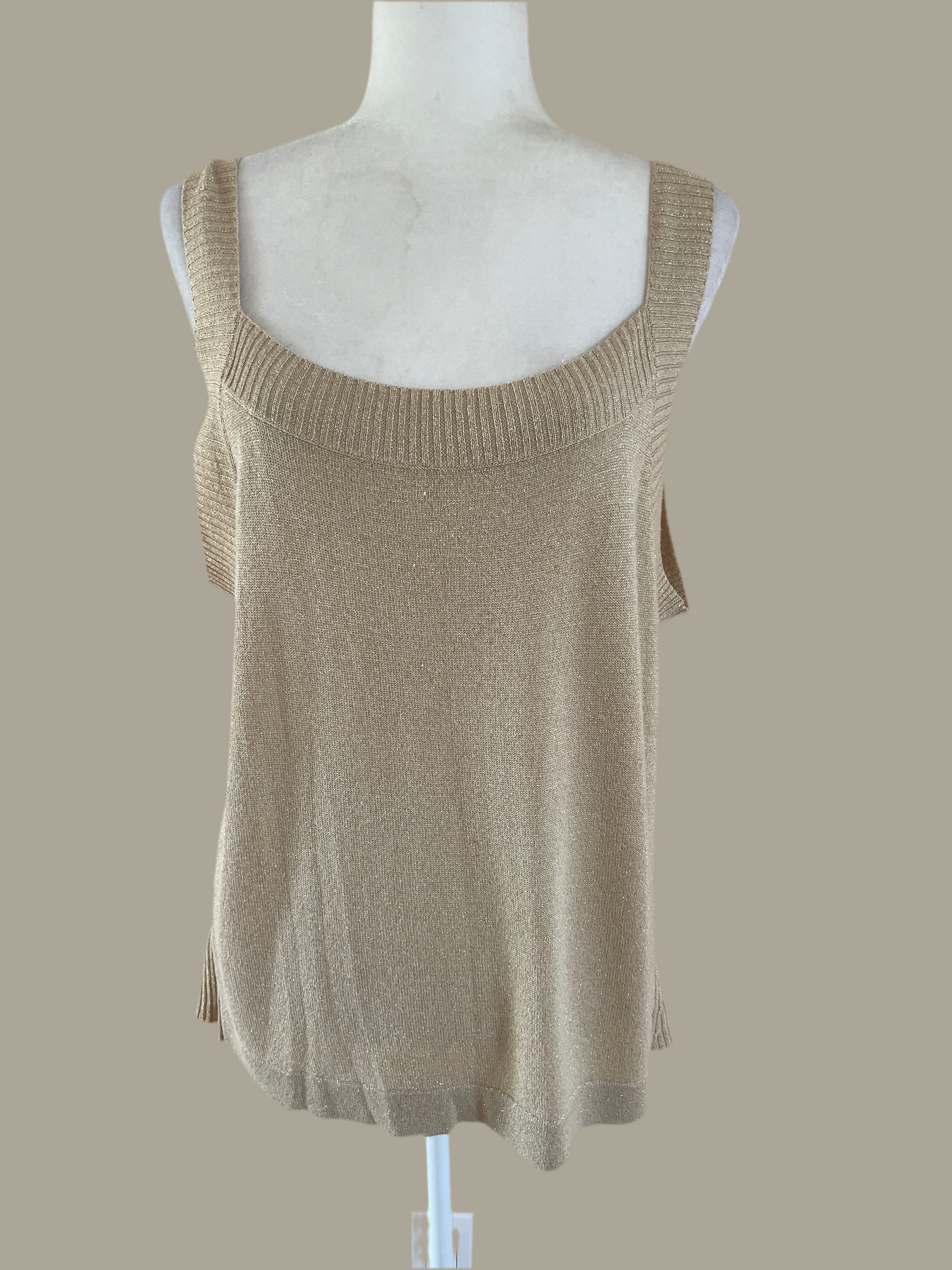 90s Vintage Bob Mackie Gold Shimmering Knit Dressy Top X/L