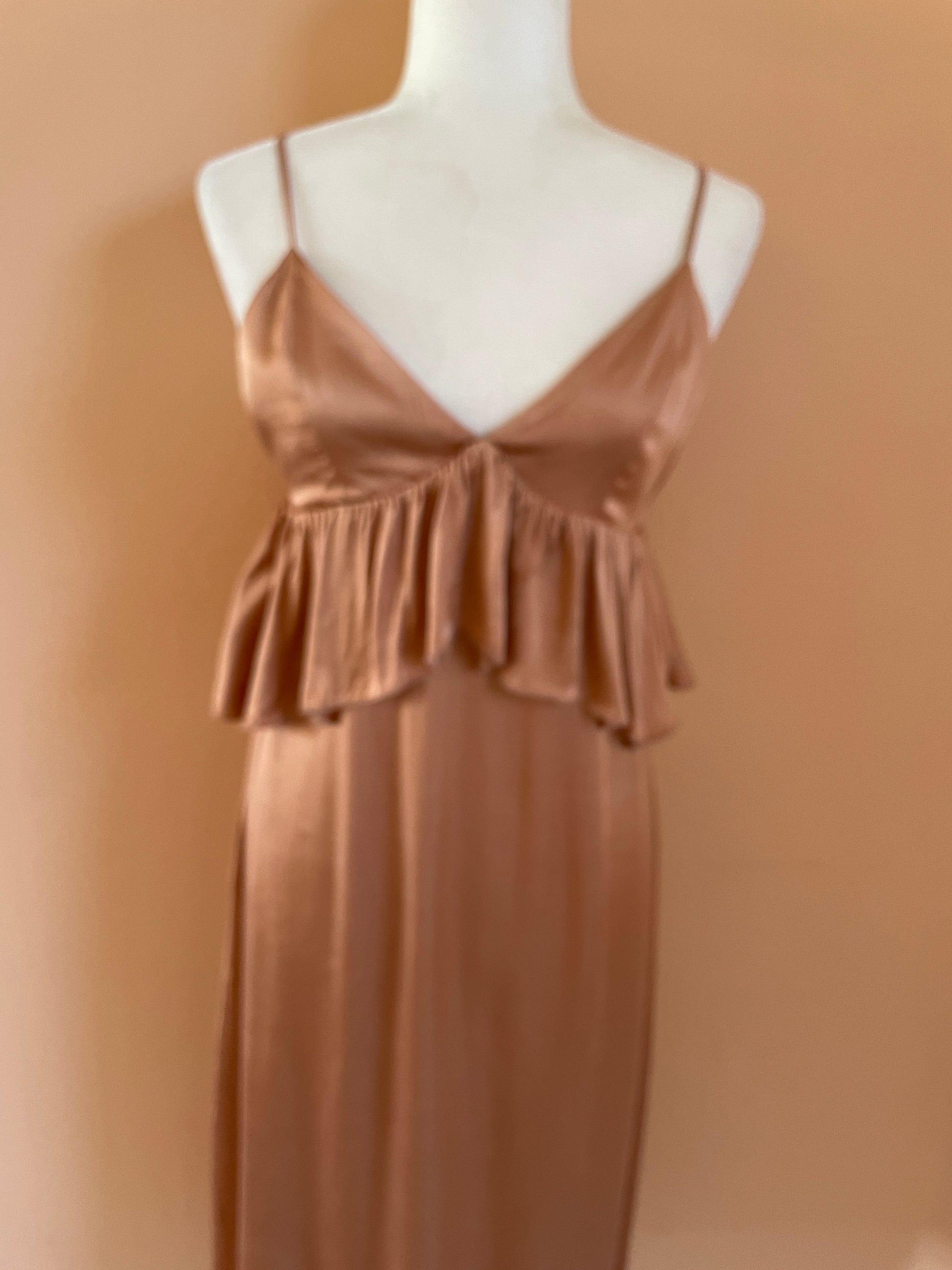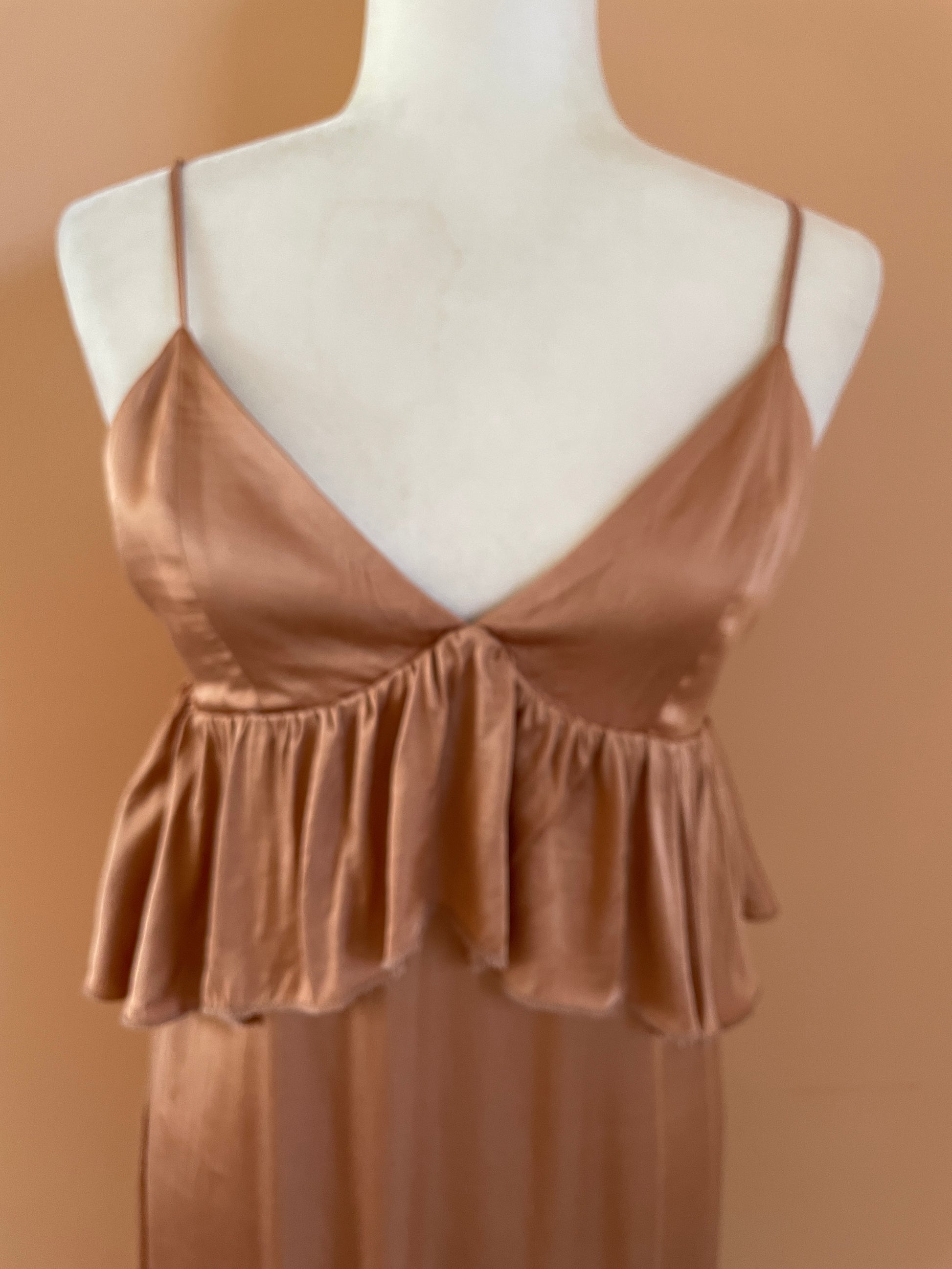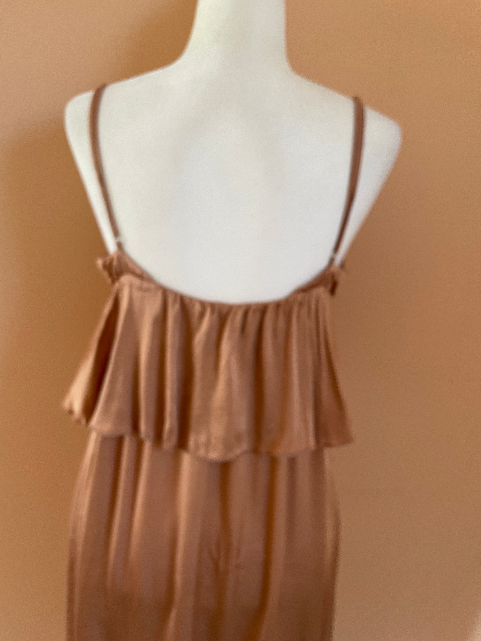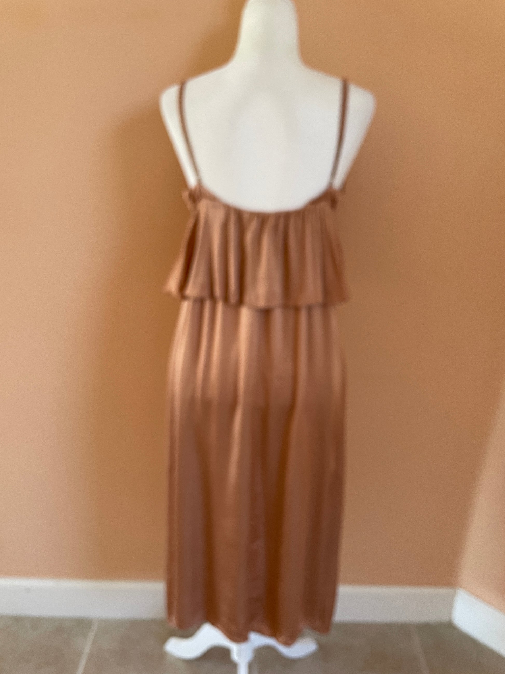 H & M 2000s Silky Gold Ruffle Midi Dress M