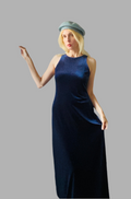 A deep blue maxi dress that glides like midnight and shines subtly with every step — pure 2000s elegance redefined.